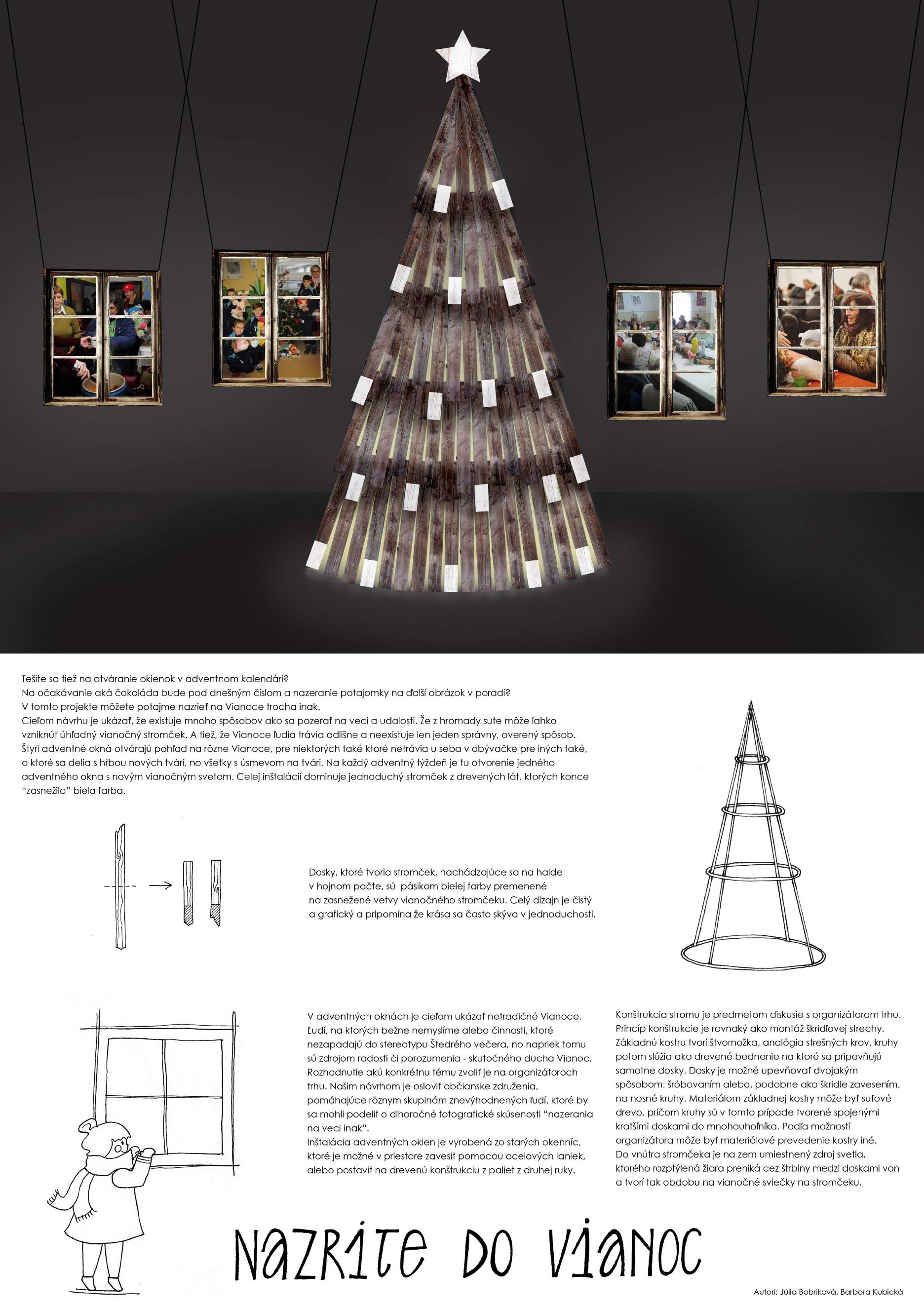Viťazkami súťaže sa stali študentky záhradnej architektúry Júlia Bobríková a Barbora Kubická. Ich návrh využíval najmä odpadové drevo. Výsledkom bol vianočný stromček s jednoduchým dizajnom a praktickým technickým riešením. Víťazky boli ocenené finančnou a vecnou cenou. Ceny za víťazný projekt odovzdali zástupcovia partnerských organizácií ENVI - PAK a Tajpejská reprezentačná kancelária Bratislava, súťaž podporila aj Nadácia VÚB - partner živej kultúry v Novej Cvernovke.