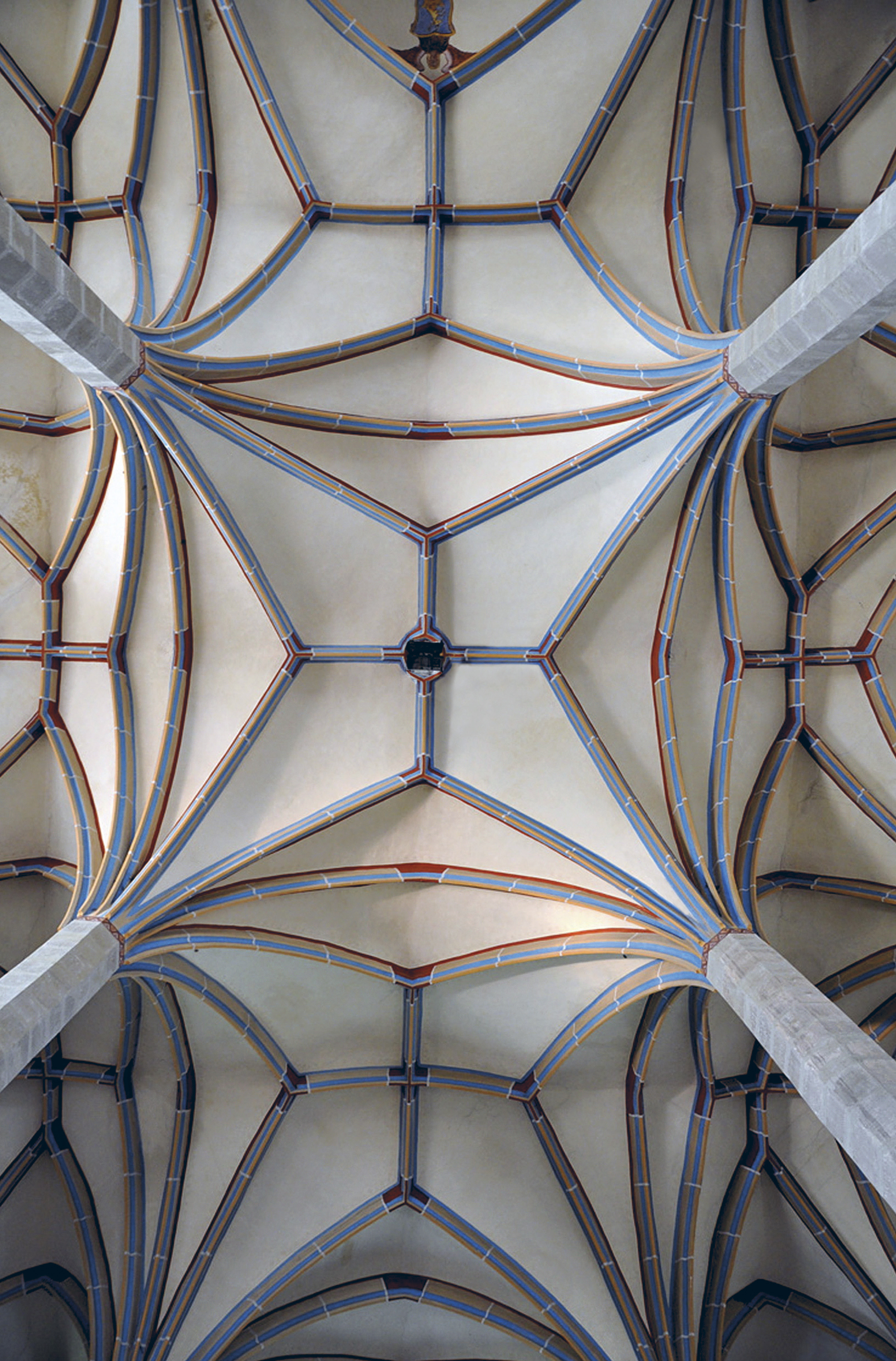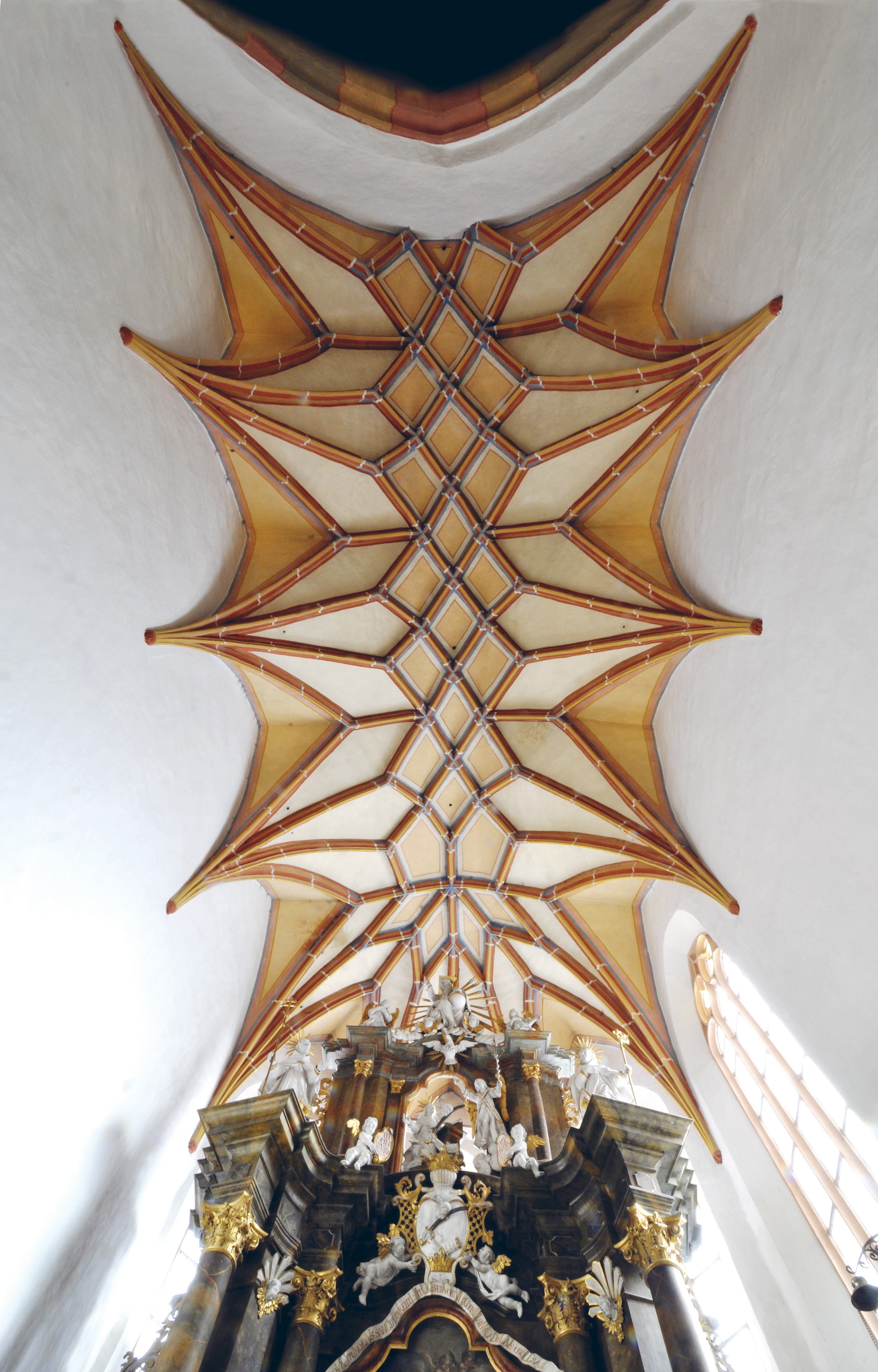Osobitné miesto na výstave dostala samotná architektúra kláštorného kostola v Okoličnom – najväčšej sakrálnej stavby na Liptove. Ide o unikát, v gotickom staviteľstve na Slovensku vo viacerých ohľadoch bez precedensov. Súdiac podľa zachovaných kamenárskych značiek, najbližšou súvisiacou architektúrou je farský Kostol sv. Kríža v Kežmarku – doména rodu Zápoľských. Štefan Zápoľský, a po jeho smrti (1499) jeho vdova Hedviga Tešínska stáli pravdepodobne aj za dokončením a interiérovým vybavením kláštorného kostola v Okoličnom. Architektúru prezentujeme vo forme digitálneho 3D modelu (G – Ateliér, Július Rybák, Stanislav Krajňák) a viacerých analytických pohľadov do interiéru, na exteriér či na dobový krov z prelomu 15. a 16. storočia. Kežmarok na výstave zastupuje vynikajúca socha sv. Sebastiana z tamojšieho farského kostola, ktorá je zároveň ojedinelým príkladom citátu grafického motívu od Martina Schongauera v „3D verzii“.