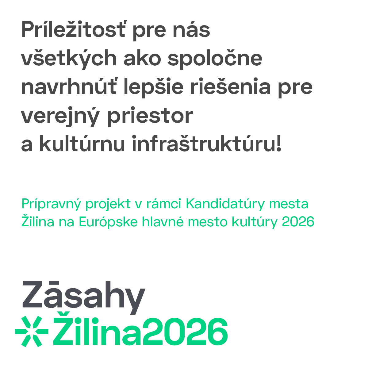 Žilina je jedným zo slovenských miest, ktoré kandidujú v súťaži o titul Európske hlavné mesto kultúry pre rok 2026. Táto kandidatúra jednoznačne predstavuje nový impulz a príležitosť, ako okrem iného zlepšiť verejný priestor v meste. Projektový tím Žilina 2026 sa preto rozhodol pre tento zámer využiť známu platformu Mestské zásahy, ktorá pomáha identifikovať nefunkčné miesta v meste a nabáda k hľadaniu riešení pre tieto miesta. Projekt Mestské zásahy mobilizuje odbornú aj laickú verejnosť, ktorá môže zadávať svoje podnety a nápady prostredníctvom webovej platformy.