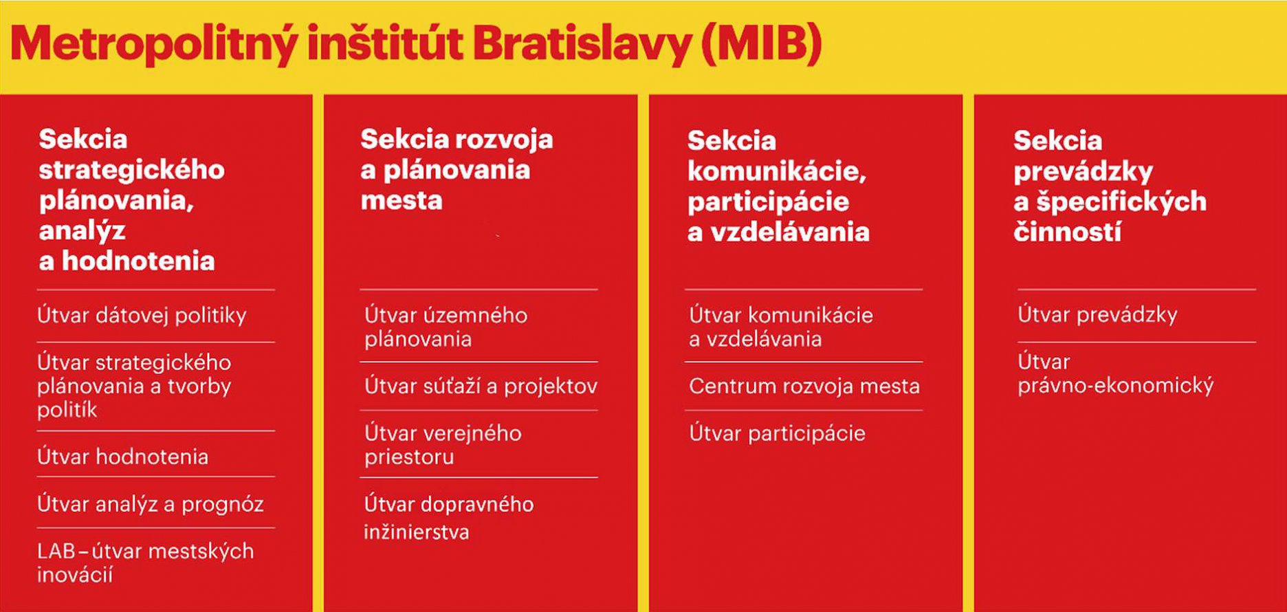 Dôjde k rozšíreniu MIBu o nových ľudí a témy, bude transformovaná časť magistrátu venujúca sa územnému plánovaniu a doprave, alternatívne aj téme zelene a životného prostredia. Zamestnanci uvedených oddelení budú zapožičaní do MIBu.