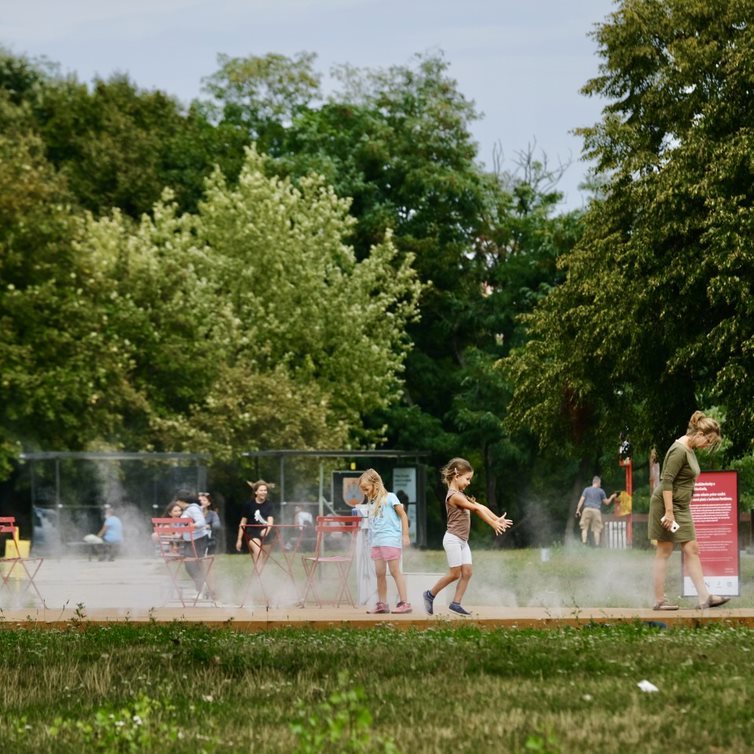 Hmlová fontána tak poslúži na zvlhčenie priestoru, ktorý je v teplých mesiacoch doslova prehrievaný.