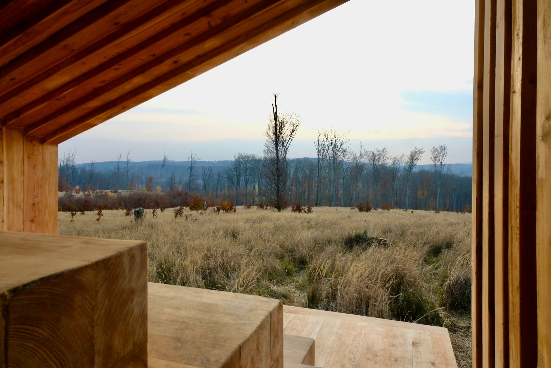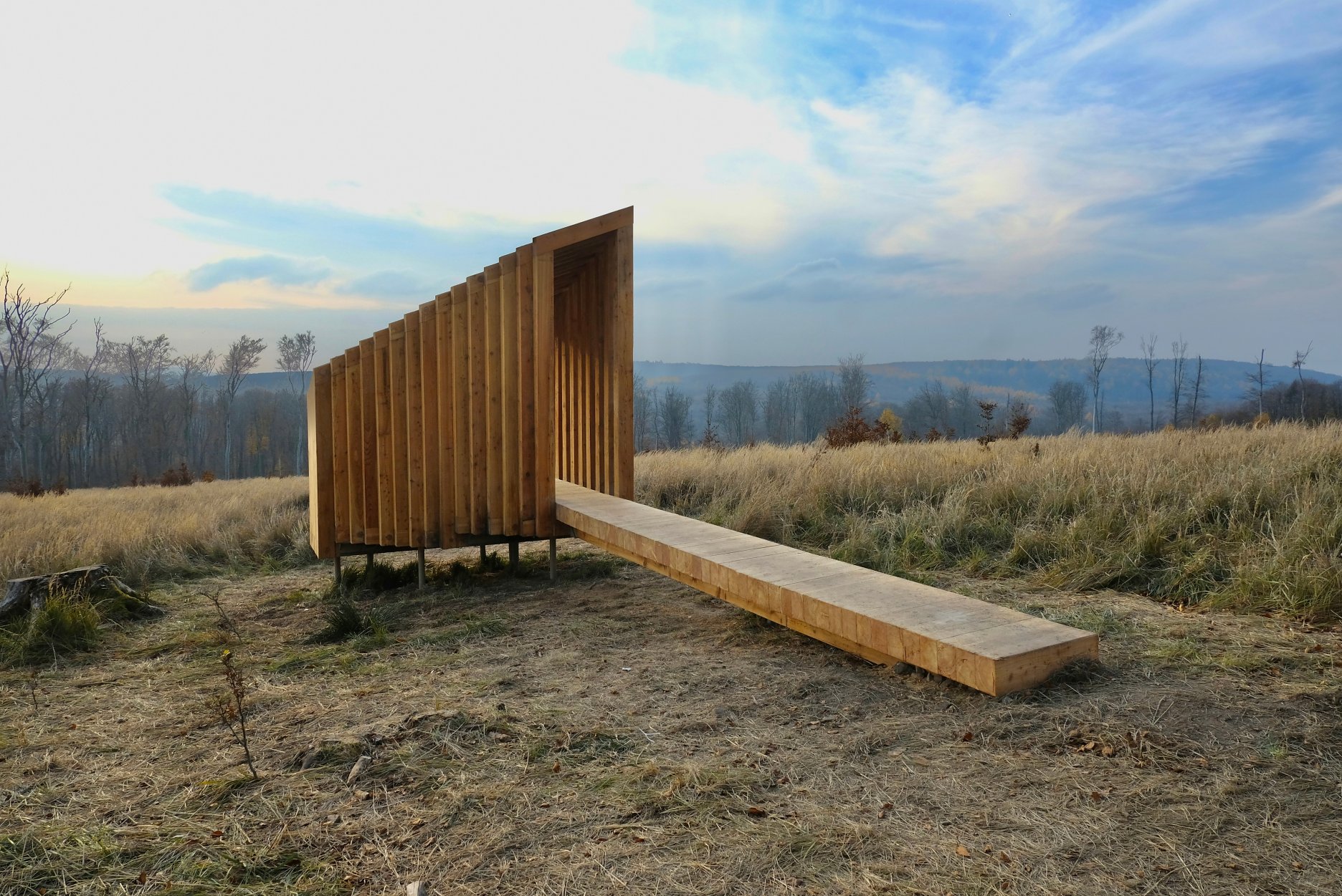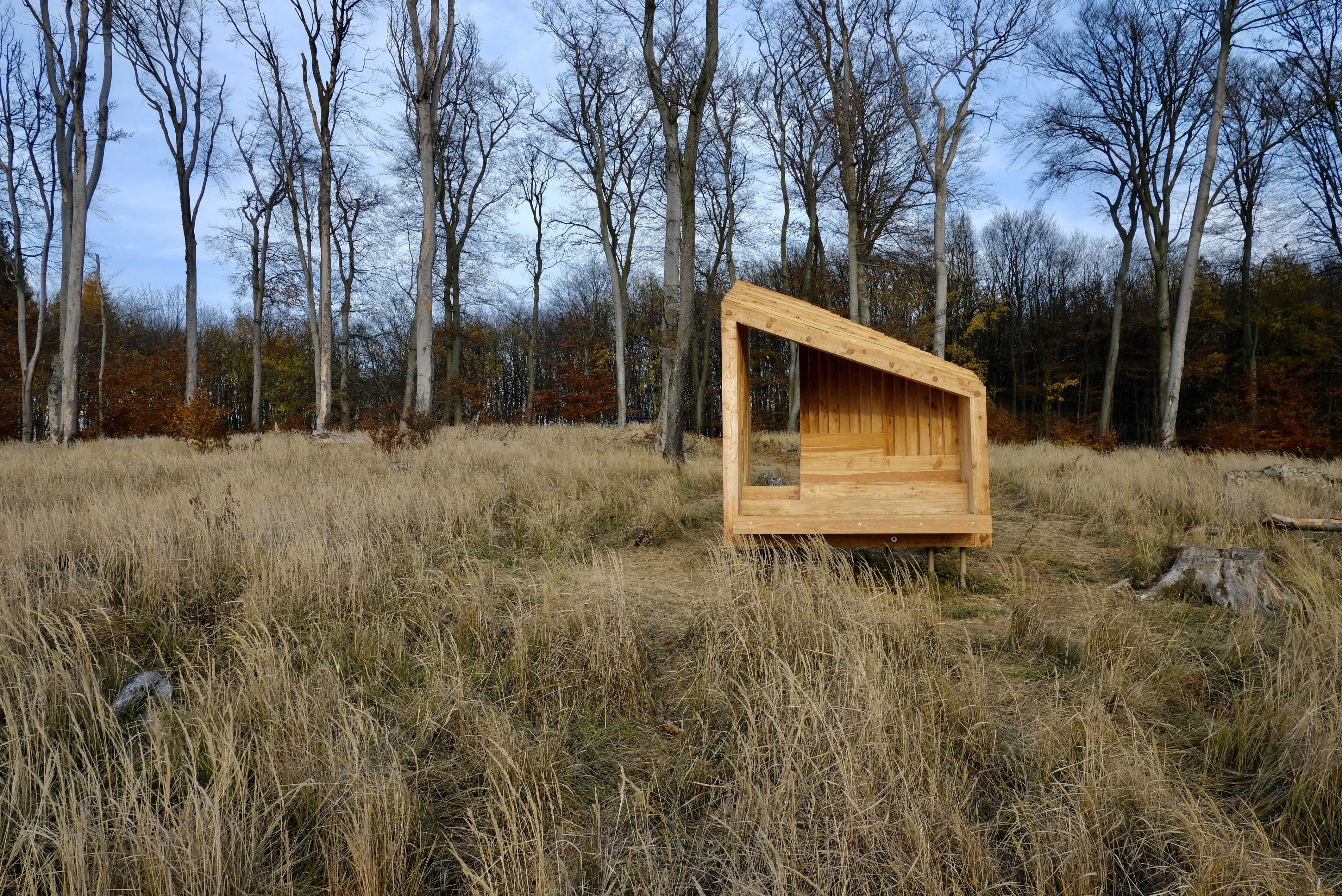 Drobná drevostavba z dielne bratislavského ateliéru OFFICE110 architekti, ktorý v Karpatoch navrhoval aj obnovu starej horárne na Peknej ceste, slúži primárne ako pozorovňa zvierat, posedenie pre okoloidúcich, alebo úkryt pred nečasom.