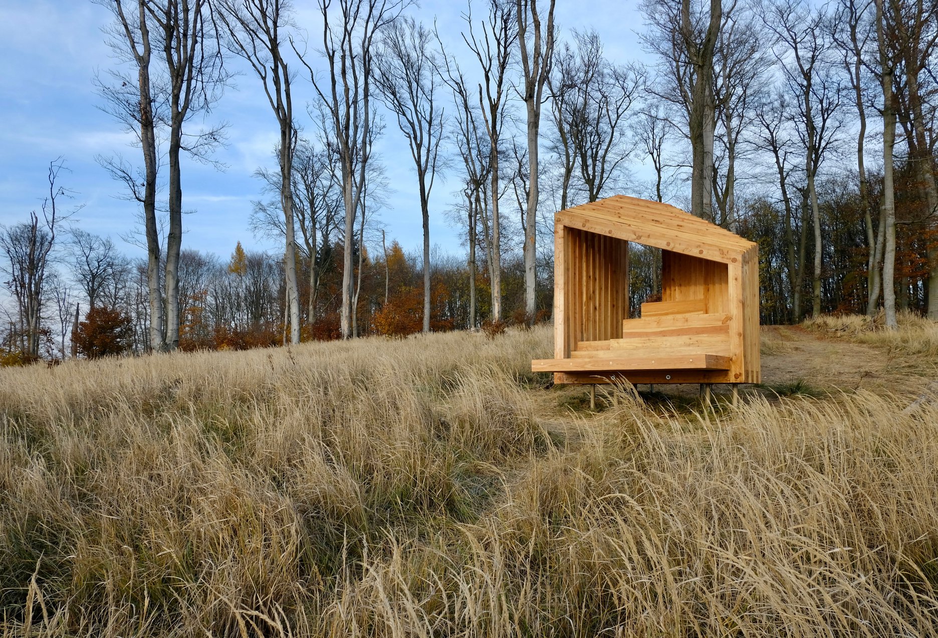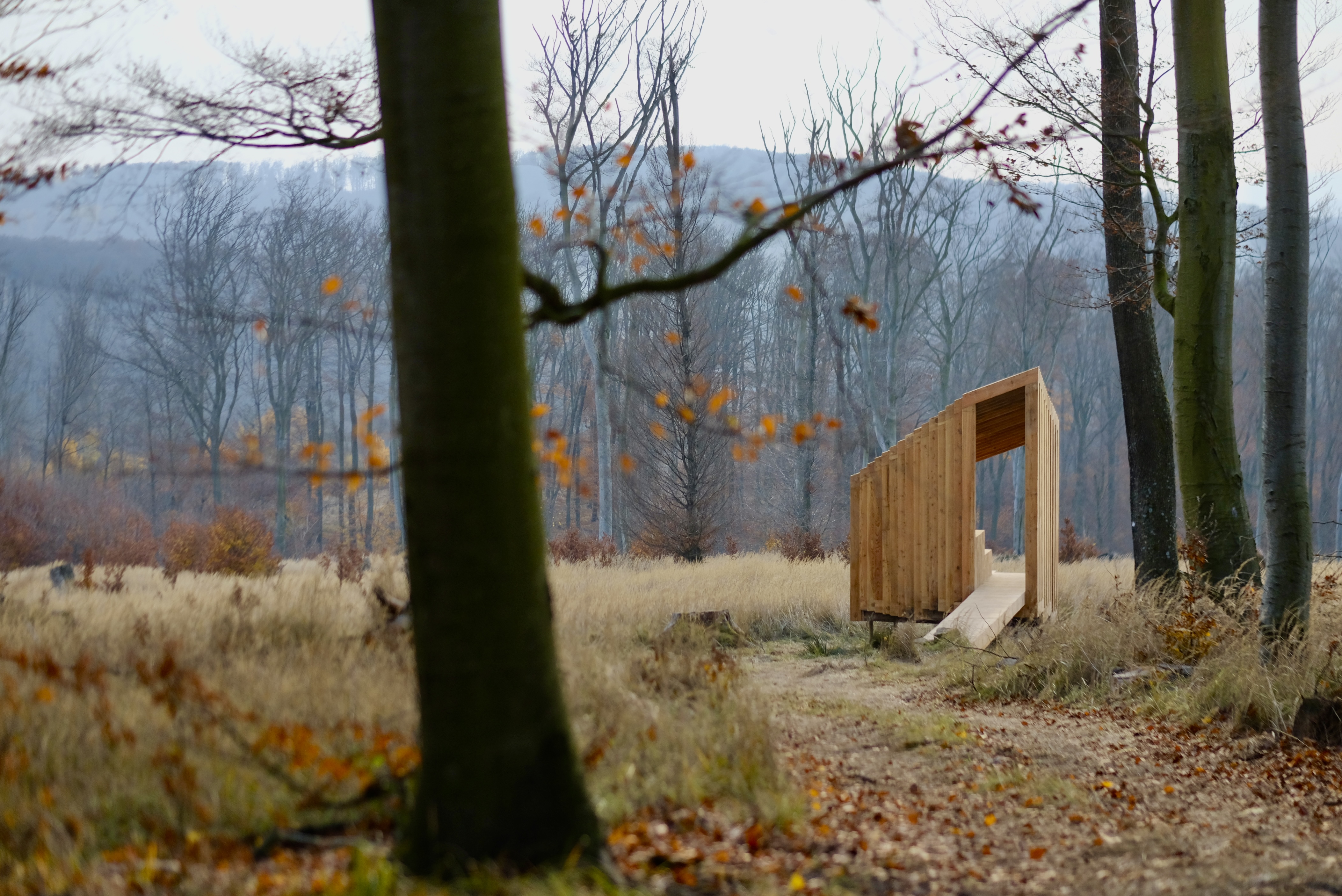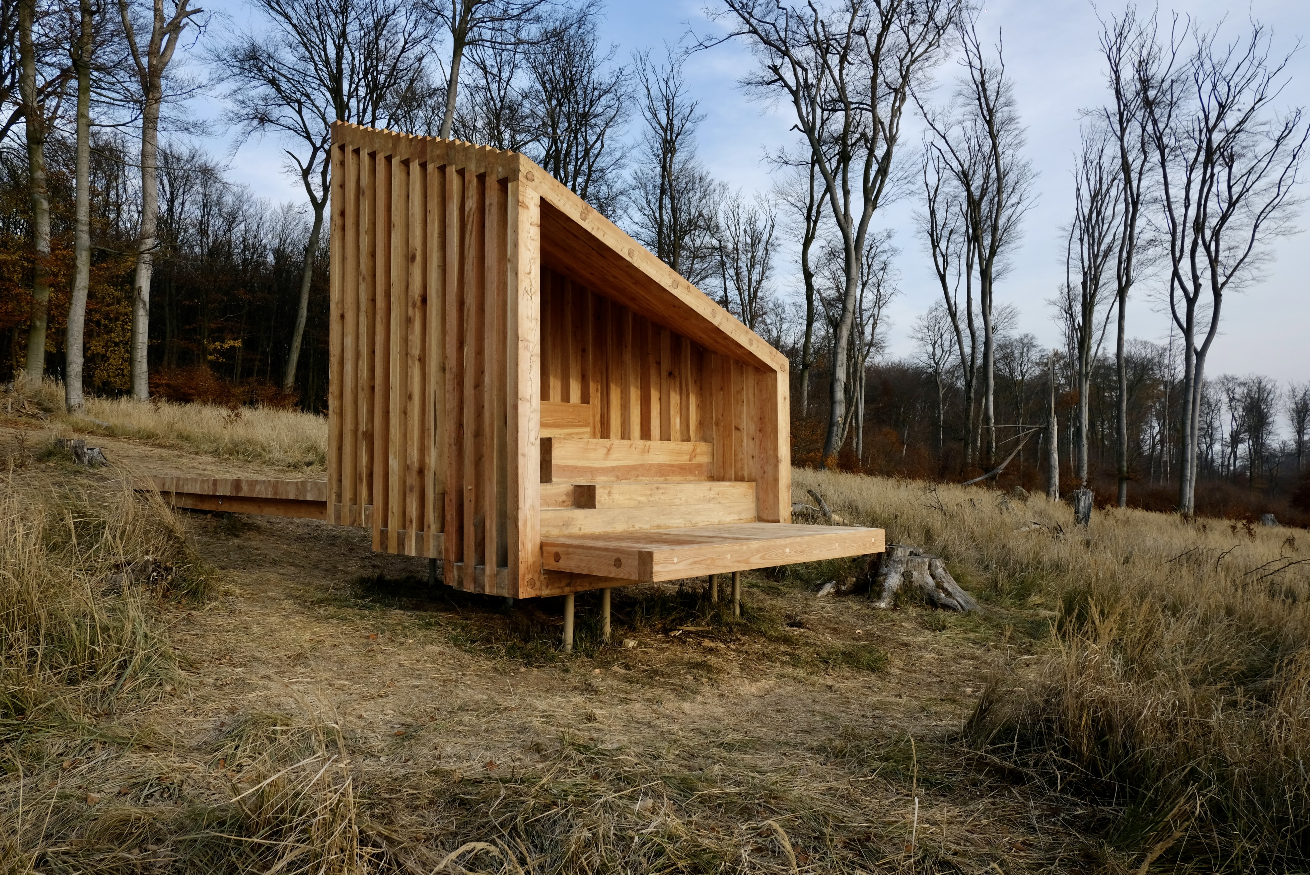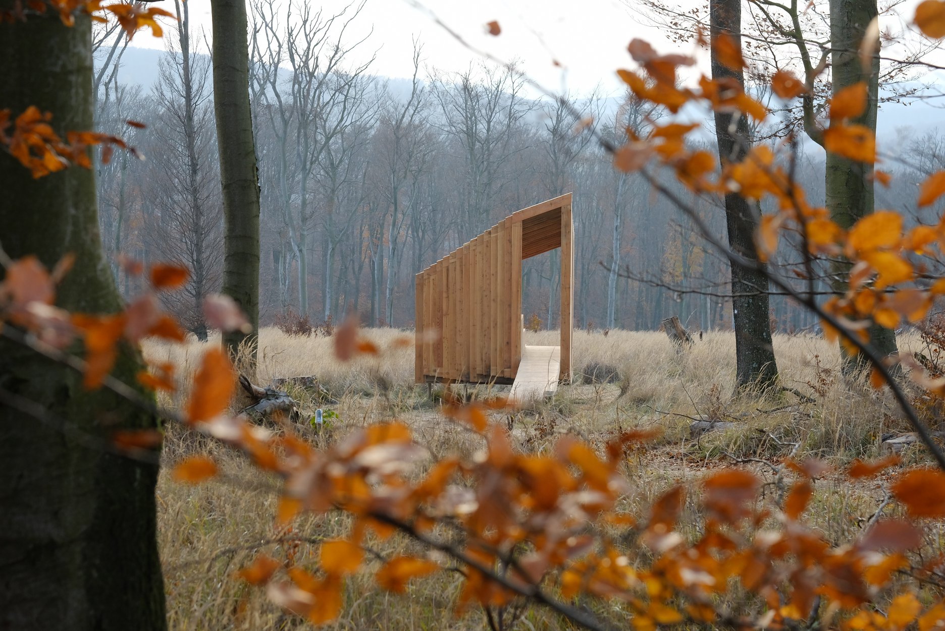 Drobná drevostavba z dielne bratislavského ateliéru OFFICE110 architekti, ktorý v Karpatoch navrhoval aj obnovu starej horárne na Peknej ceste, slúži primárne ako pozorovňa zvierat, posedenie pre okoloidúcich, alebo úkryt pred nečasom.