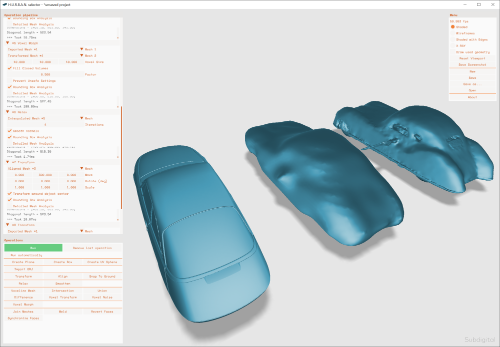 Ako približuje jeden zo spolutvorcov softvéru Ján Pernecký zo štúdia Subdigital: “H.U.R.B.A.N. selector je navrhnutý tak, aby práca užívateľa vyzerala ako modelovanie v bežnom 3D softvéri, ale aby pri tom zároveň generoval parametrický model. Vďaka tomu má možnosť vrátiť sa k akémukoľvek predchádzajúcemu kroku a zmeniť mu parametre. Užívateľ si vlastne prirodzeným spôsobom navrhne pracovný proces a potom mu môže meniť nastavenia a hľadať najvhodnejší výsledok – v tomto prípade najzaujímavejšiu 3D formu. Vyberá teda z mnohých možnost – preto slovo selector v názve.”
