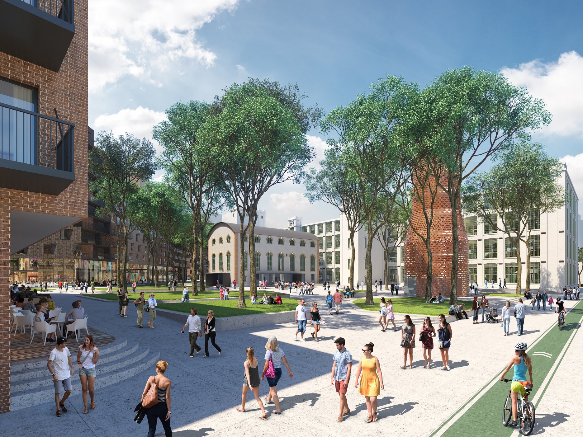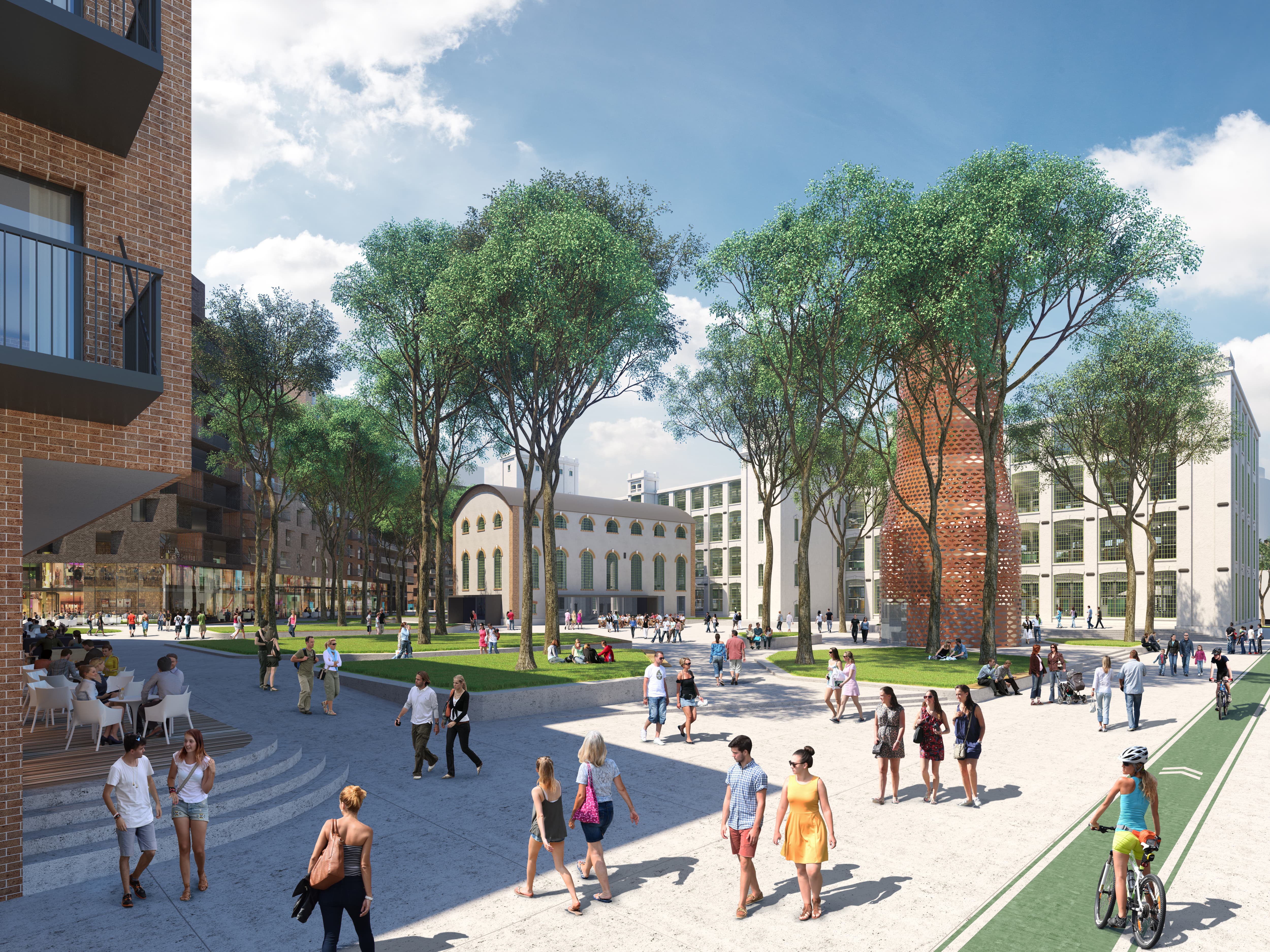 Víťazný návrh ateliéru Compass prinesie nízkopodlažnú blokovú výstavbu, s viac ako 800 bytmi a poloprivátnym priestorom vnútroblokov. Prvá etapa rezidenčnej časti ponúkne 250 bytov s výhľadom na námestie a aktuálne je v procese získavania potrebných povolení. Do predaja vstúpi v budúcom roku a plánované ukončenie výstavby prvej etapy je v roku 2021. V tom období je už plánovaná aj výstavba ďalších častí rezidencie a nových komerčných priestorov v južnom bloku areálu.