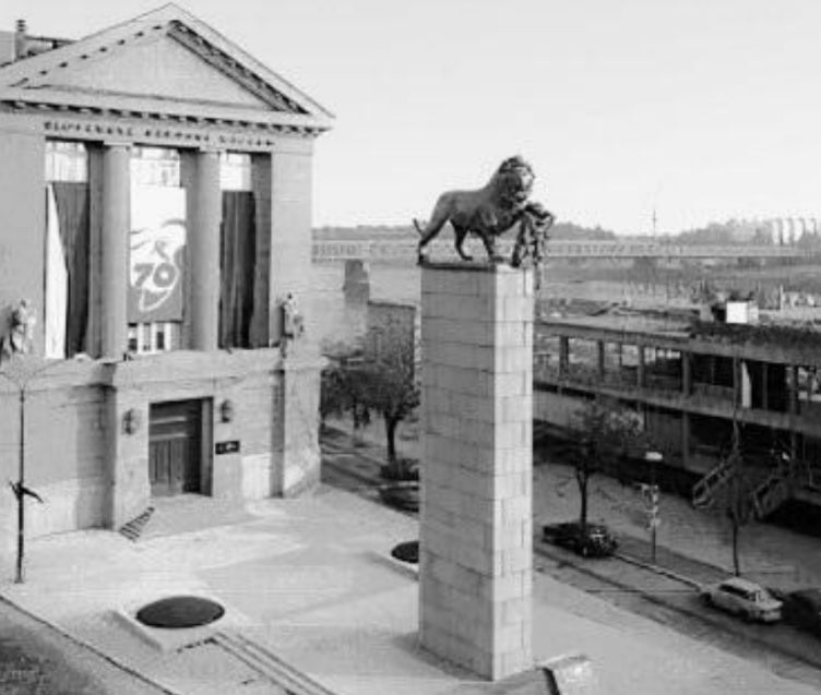 Pri príležitosti 70. výročia vzniku štátu bol 24.10.1988 pred Harmincovou budovou Slovenského národného múzea odhalený Pamätník československej štátnosti. Išlo o 15 m vysoký pylón, na ktorom bol čelne, teda tak ako to pôvodne zamýšľal aj Kafka, umiestnený zreštaurovaný originál leva o váhe 5 900kg z pôvodného súsošia. Bolo zrejme kladne prijaté politrukmi v komisii, ktorá takéto dielo musela odsúhlasiť, že lev sa díva s vycerenými zubami na západ.