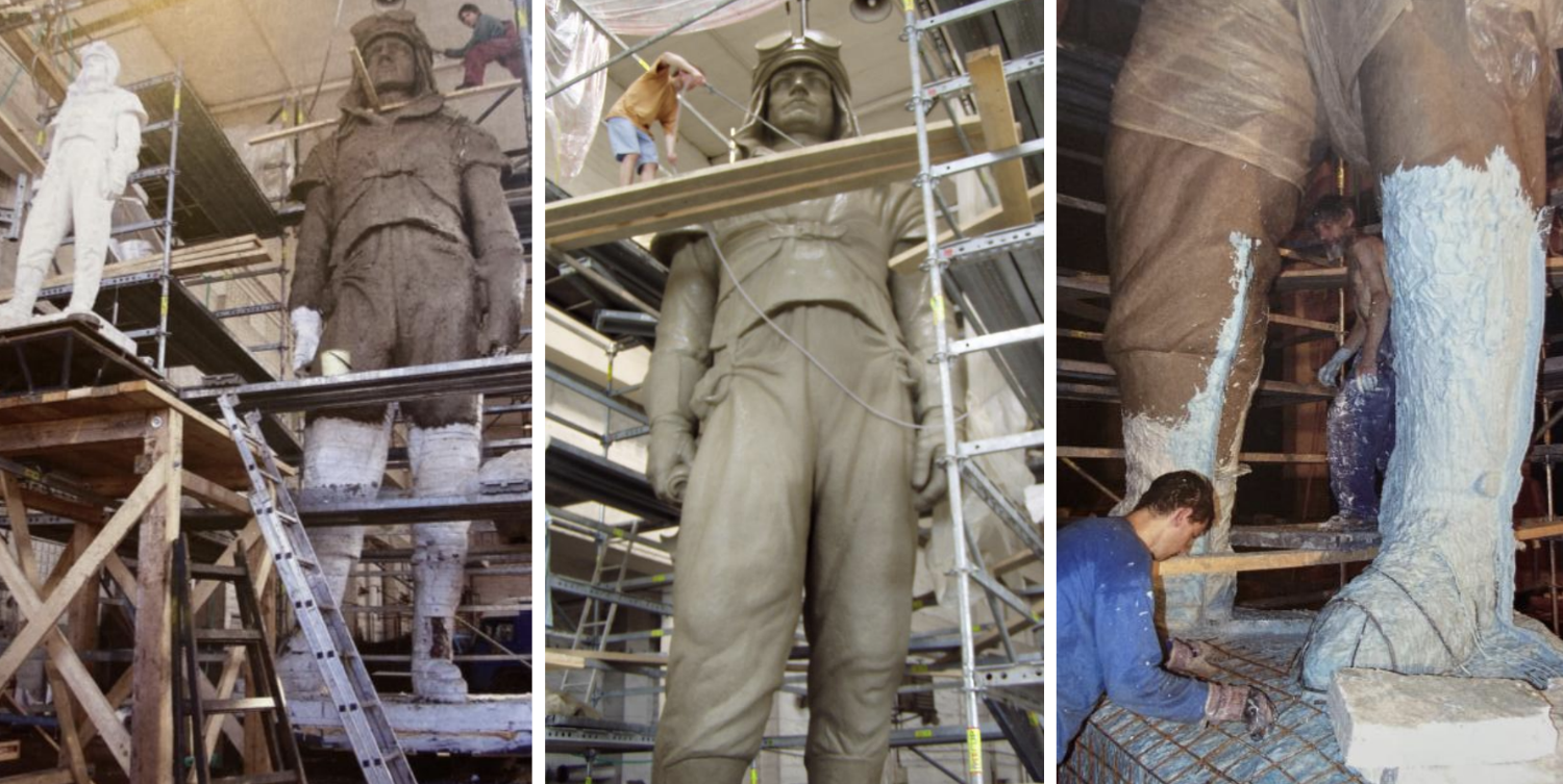 Zaujímavá bola technológia „výroby“. Na nosnú konštrukciu sa upevnilo polystyrénové jadro na ktoré sa nanášala hlina a tvarovala sa pomocou pantografu. Tieto práce trvali pol roka a dokončené boli v máji 2006. Celý čas sa musela udržiavať hlina na soche vlhká, aby sa dala opracovávať (v menších prípadoch sa dnes používa aj plastelína).