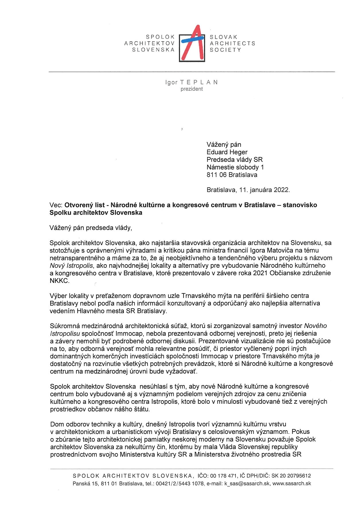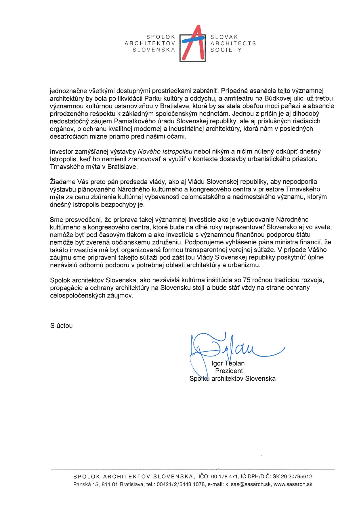 Otvorený list Prezidenta SAS Igora Teplana.
