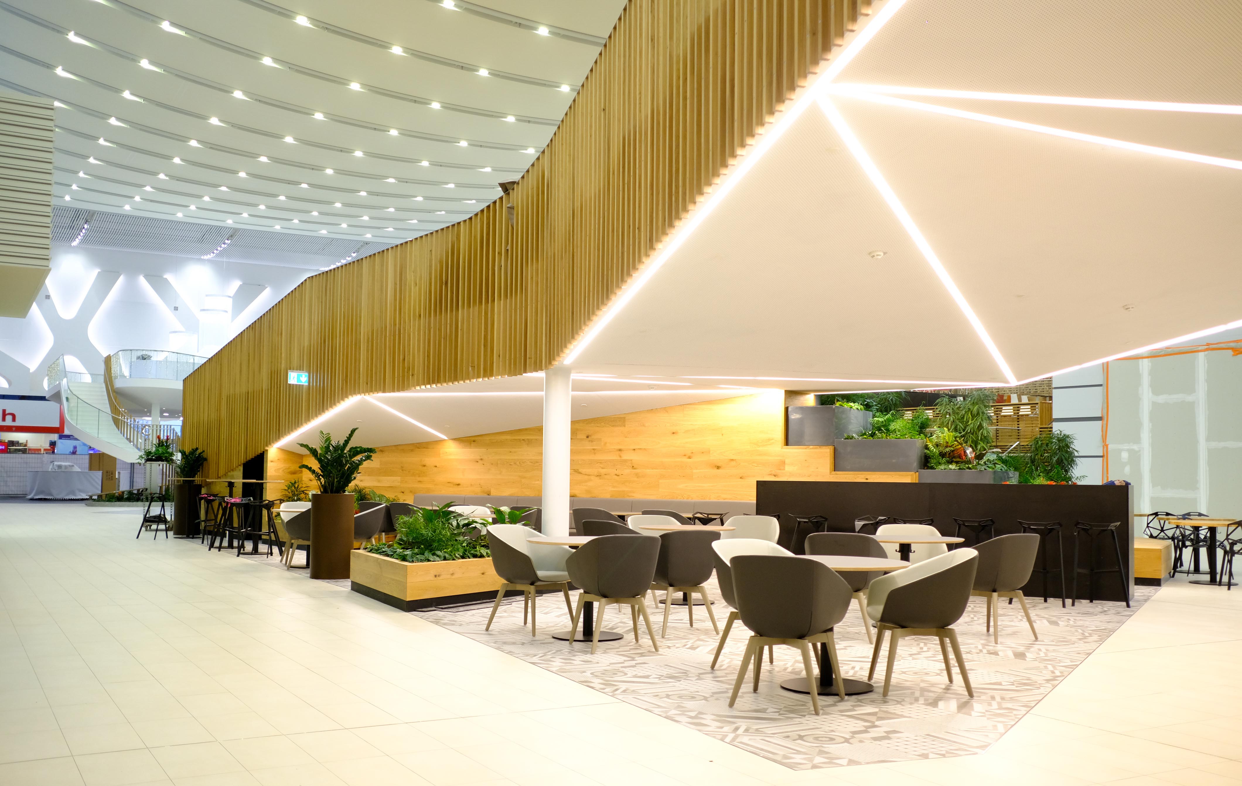 Pre návštevníkov bude v novej gastro pasáži k dispozícii až 650 miest na sedenie v ôsmich rôznych zónach s pripojením pre laptopy či nabíjanie mobilov. Súčasťou zóny bude aj vonkajšia terasa so zeleňou a s obsluhou.