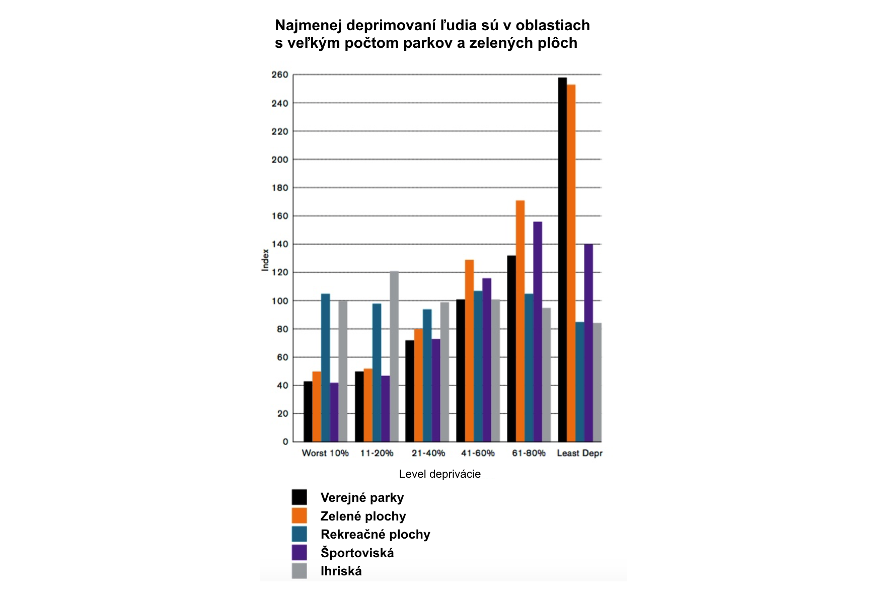 Široké ulice, námestia, parky, udržiavané chodníky, cyklotrasy a mestský mobiliár podporujú interakciu medzi ľuďmi a životným prostredím, vytvárajú pozitívne využitie priestoru a zvyšujú životaschopnosť mesta. Pekné a upravené mesto navyše vplýva na ľudí. Behaviorálne výskumy ukázali, že v krajšom prostredí sú ľudia milší a slušnejší. Jedným z nich je aj štúdia odborníkov z britského Design Council, ktorí skúmali, ako vplývajú rôzne typy zelených verejných priestorov na úroveň spokojnosti s kvalitou života. Zistili, že oblasti s lepším hodnotením majú viac zelených verejných priestorov (parkov, záhrad a športovísk).