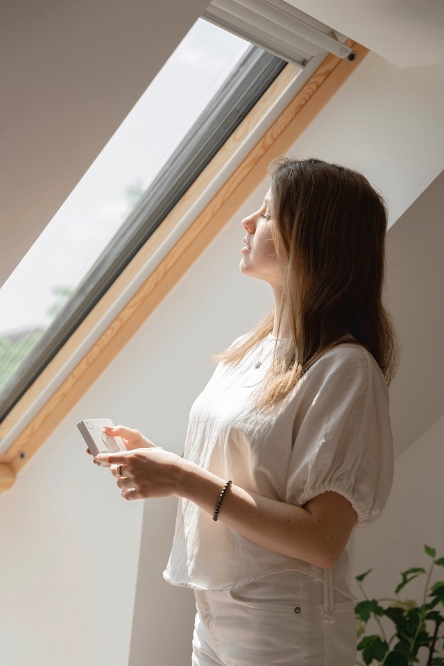 V prípade strešných okien užívateľ dotykom na displeji telefónu alebo diaľkového ovládača upravuje vetranie, teplotu alebo množstvo svetla v interiéri. Pomocou VELUX App Control spravuje všetky elektrické a solárne okná a doplnky naraz a zároveň umožňuje nastaviť preferované režimy – či už na vyvetranie pred spaním, alebo stiahnutie roliet pre pokoj a súkromie.