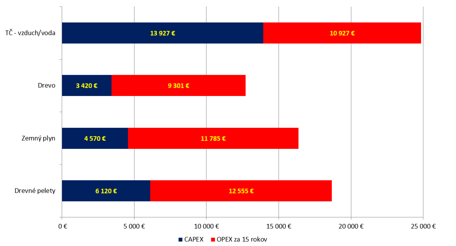 - V investičných nákladoch pre vykurovacie systémy na tuhé palivo a tepelné čerpadlo nie sú započítané náklady na zriadenie kotolne a skladovacie priestory na drevo a drevné peletky.