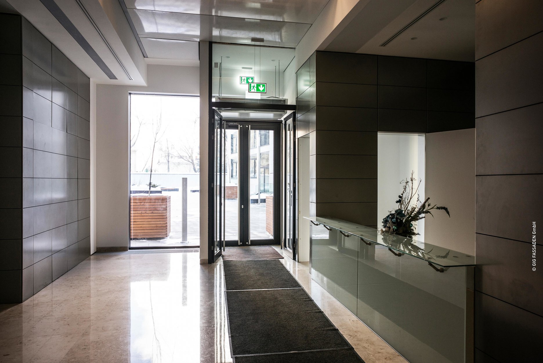 Výzvou tohto projektu boli špeciálne na mieru vyrábané Internorm drevo-hliníkové okná HF410 v materiáli dub, ako aj drážka v netradičnej farbe Makassar. Ďalšou zvláštnosťou projektu sú fixné časti okien vyhotovené v protipožiarnej úprave. Navrhnuté tu boli osobité riešenie a špeciálne testovanie v IBS Inštitúte pre protipožiarnu techniku.