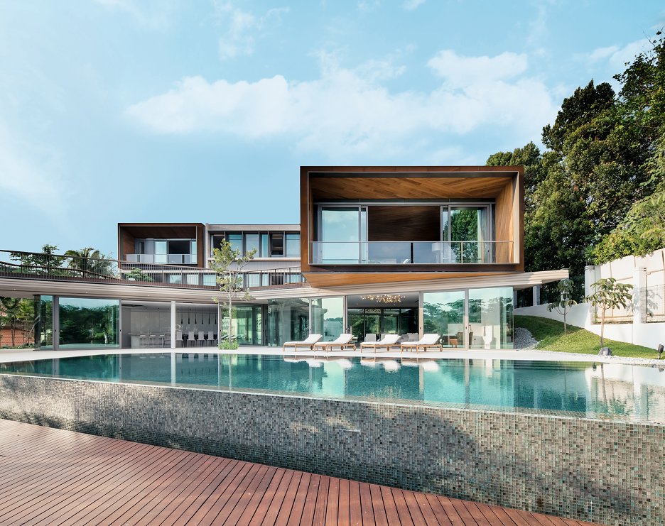 Architekti súkromnej rezidencie "House X" v Singapure sa pri navrhovaní fasády pohrali až s extrémnymi protikladmi súkromia a otvorenosti. Kým smerom do ulice je dom diskrétne uzatvorený, na juhozápadnej strane sa budova otvára a poskytuje fascinujúce výhľady na prírodnú panorámu i zázemie domu. Aby si obyvatelia domu mohli užiť prírodu a podnebie a zároveň mali v interiéroch príjemnú klímu, vytvorili presklenú fasádu z viacerých posuvných hliníkových systémov Schüco.