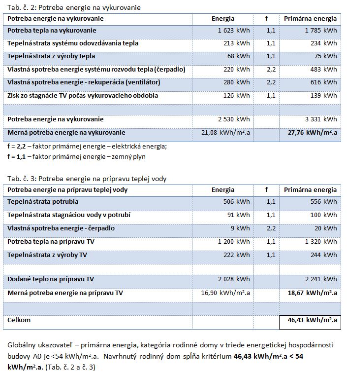 Príklad predbežného návrhu domu s takmer nulovou potrebou energie o rozlohe 120m2, zdroj tepla - kondenzačný plynový kotol.