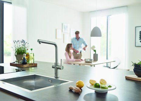 Vďaka inovovanej technológii GROHE Blue® Home Vám priamo z kuchynskej batérie môže tiecť podľa Vášho výberu voda neperlivá, jemne perlivá, alebo perlivá
