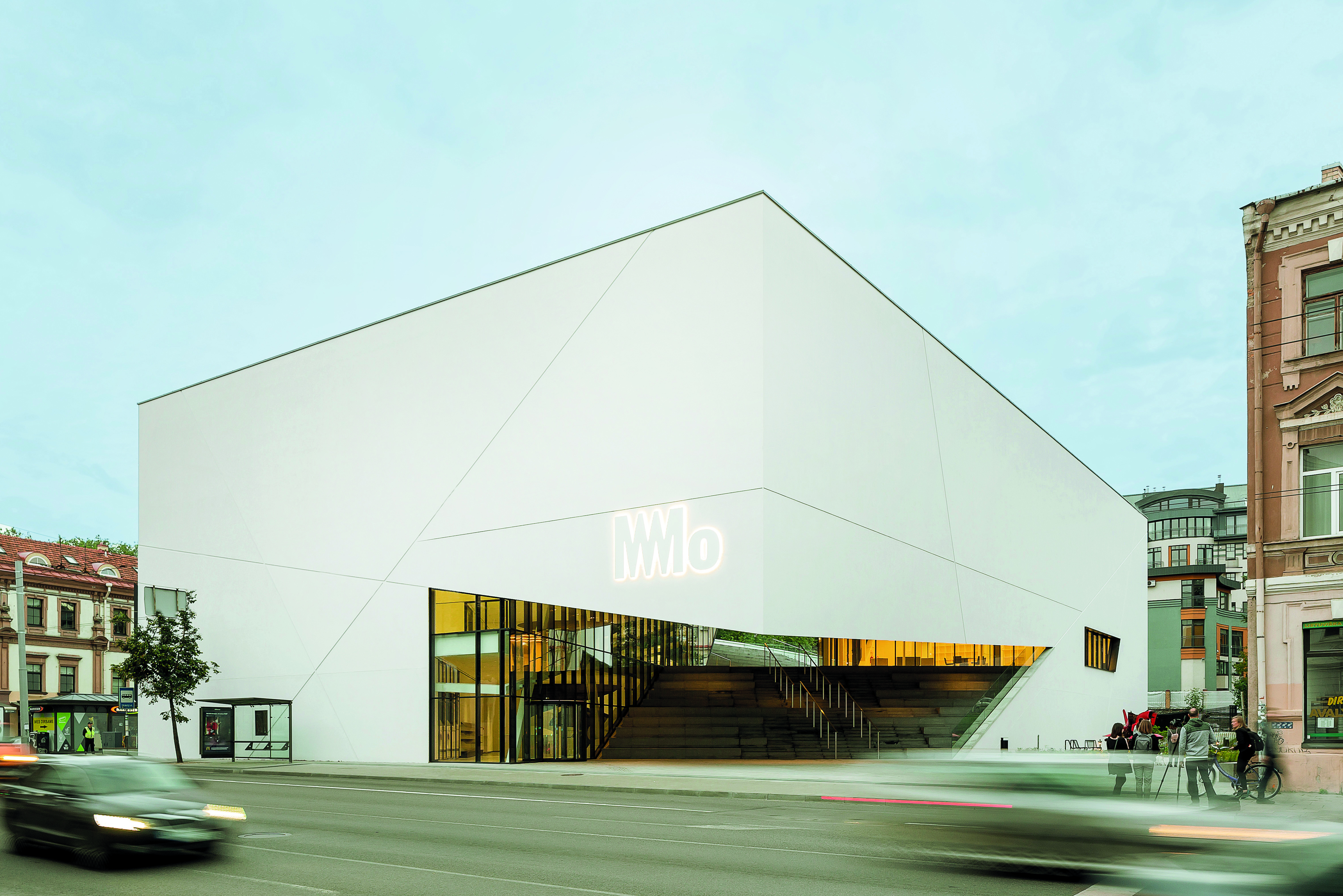 "Dynamické línie stavby zvýrazňuje polygonálne členenie fasády, ktoré vytvára dojem hĺbky a pracuje s hrou svetla a tieňa. Svetlý tón omietky korešponduje so stavbami v centre mesta."