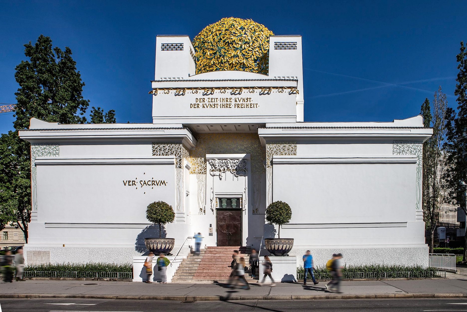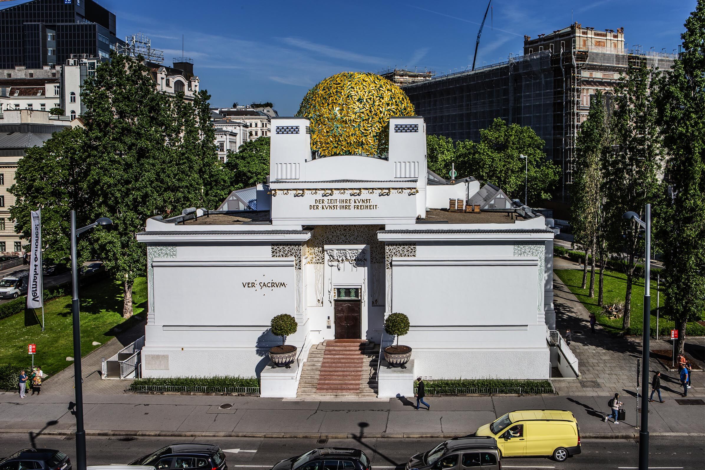 "Výstavný pavilón Viedenskej secesie, dielo J. M. Olbricha sa pri príležitosti svojho 120. výročia dočkal dôslednej obnovy. Vďaka dôslednej pamiatkovej obnove možno obdivovať jemné detaily fasády tak, ako v čase otvorenia pavilónu"