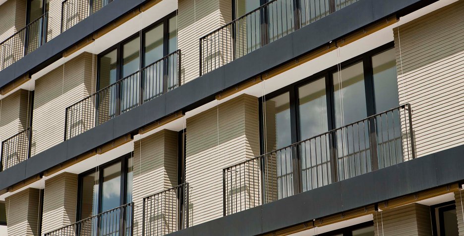 Z materiálov Sto je na fasáde použitá organická vrchná modelačná omietka Stolit MP a fasádna farba s technológiou lotosového efektu® StoColor Lotusan. Lineárne textúra Linear 20, pre ktorú sú typické drážky v omietke, posilňuje účinok meniaceho sa svetla a remeselne dokonalá aplikácie dáva fasáde bytovej rezidencie nezameniteľnú tvár.