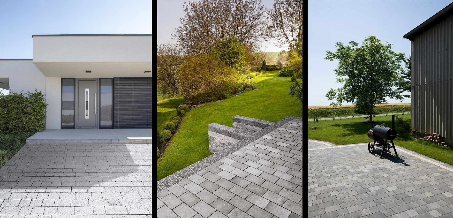 Všetky dlažby sú svojim tvarom a hrúbkou 8 cm vhodné na pravidelné zaťažovanie aj vozidlami nad 3,5 tony. Ich ďalšou výhodou je dvojitý zámok, tzv. Doppelnocken. Ten zabezpečuje pevné spojenie dlažobných kociek, ktoré oceníte aj pri svahovitých terénoch.