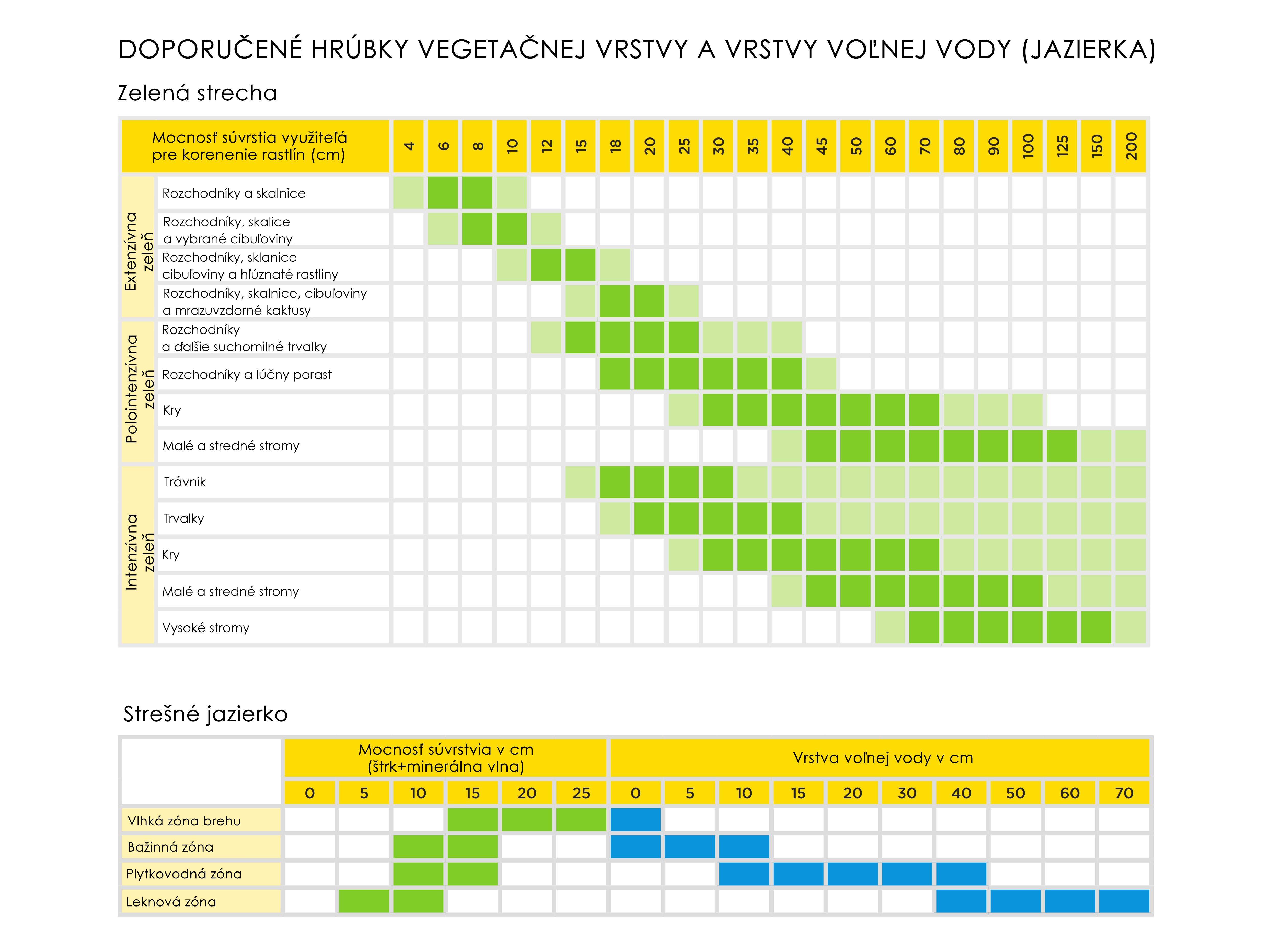 Odporúčané hrúbky vegetačnej vrstvy a vrstvy vol'nej vody (jazierka)