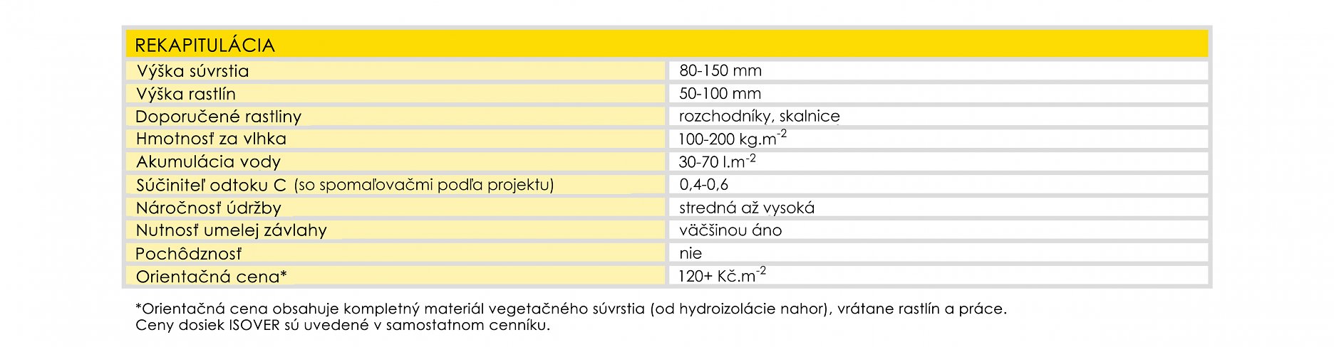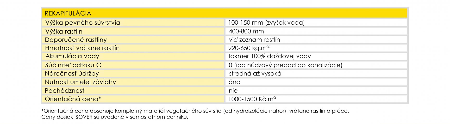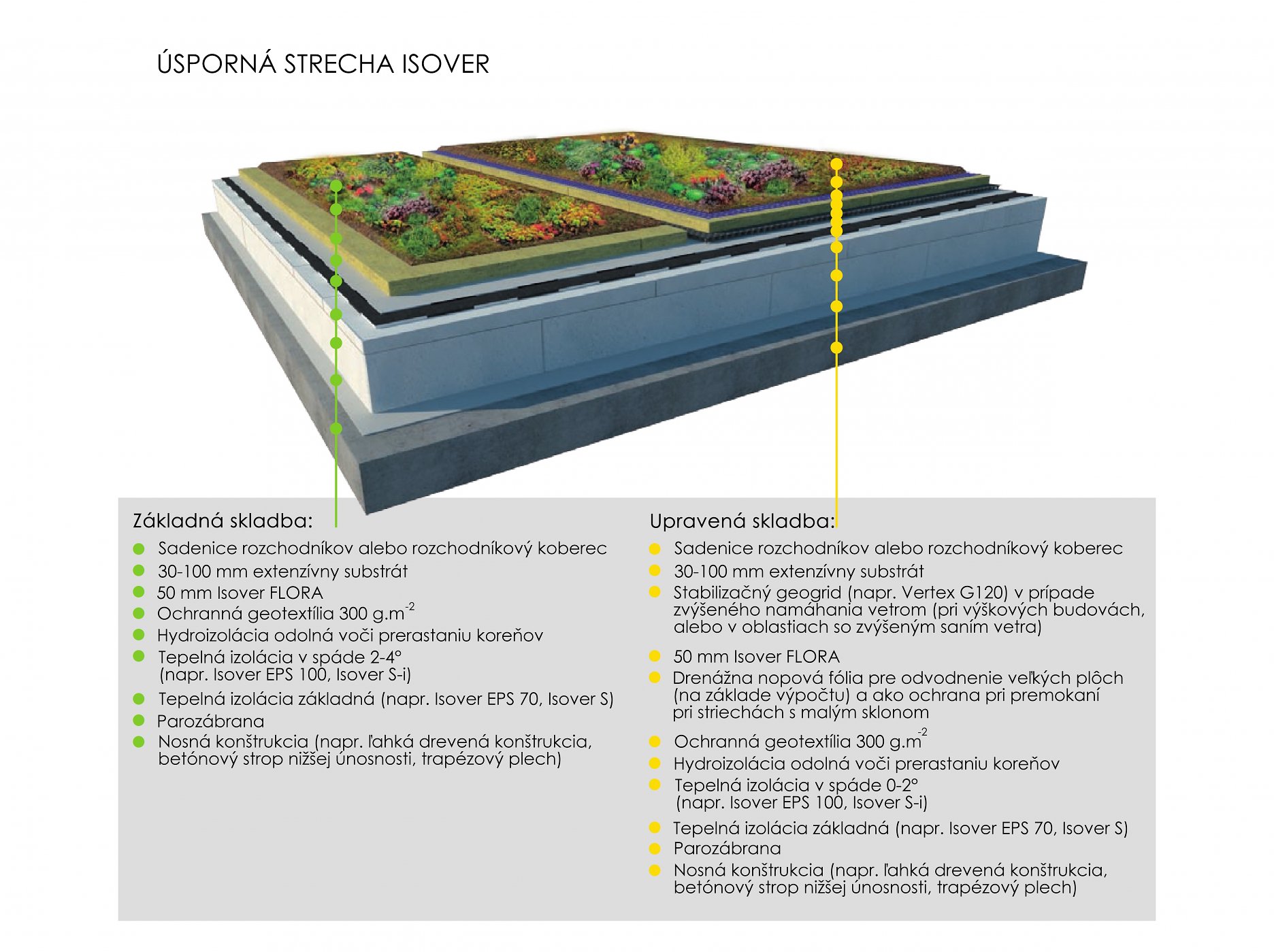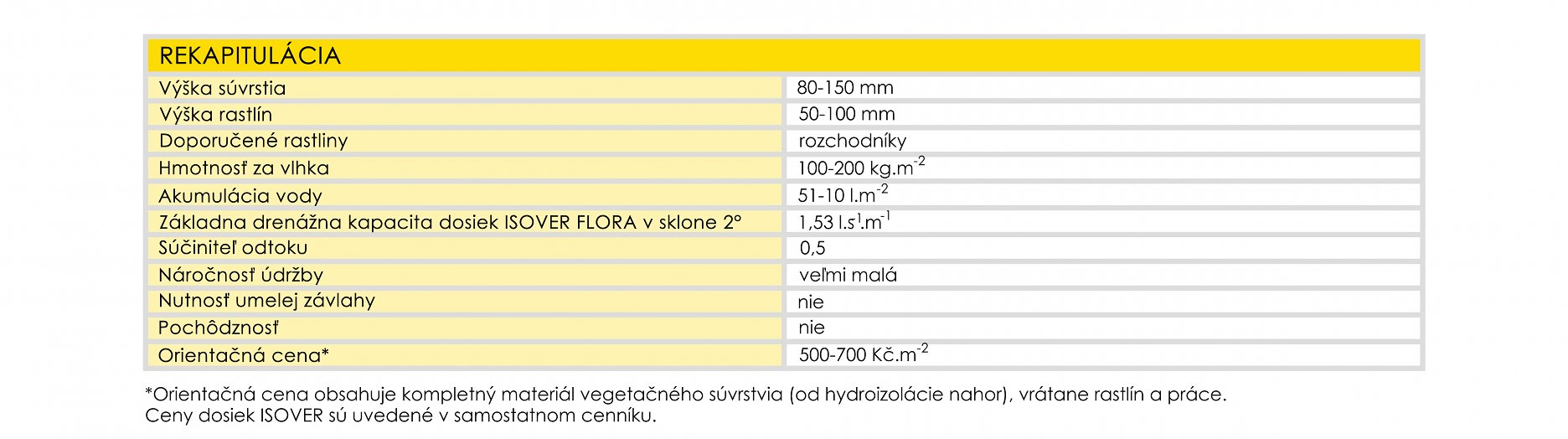 Vegetačné strechy s hydrofilnou minerálnou vlnou ISOVER majú výrazne menšie nároky na vlastnosti strechy než konvenčné skladby so substrátmi. Pre svoju veľmi nízku hmotnosť je možné realizovať vegetačnú strechu aj pri rekonštrukciách, kde nie je príliš dobrá statika.