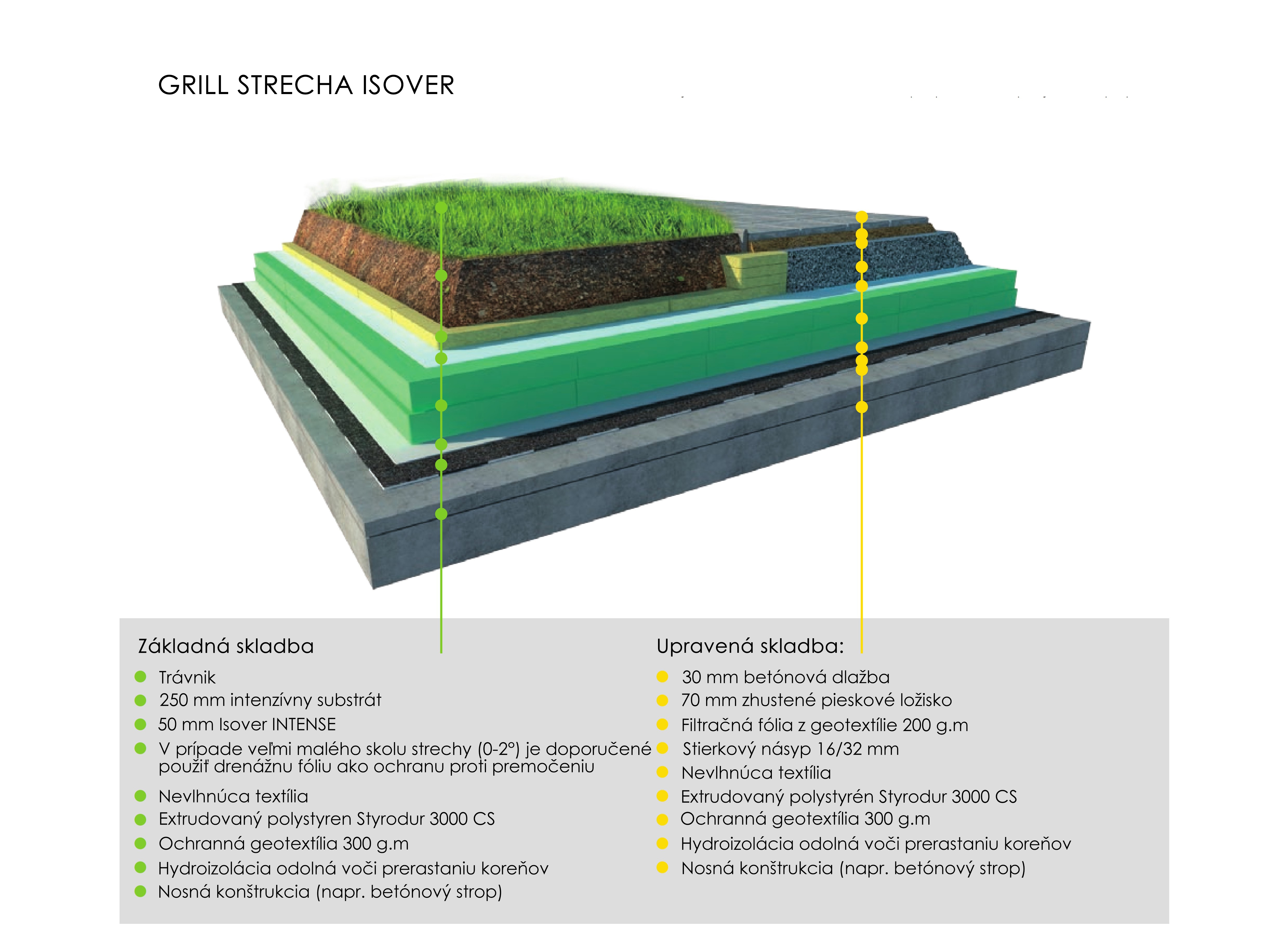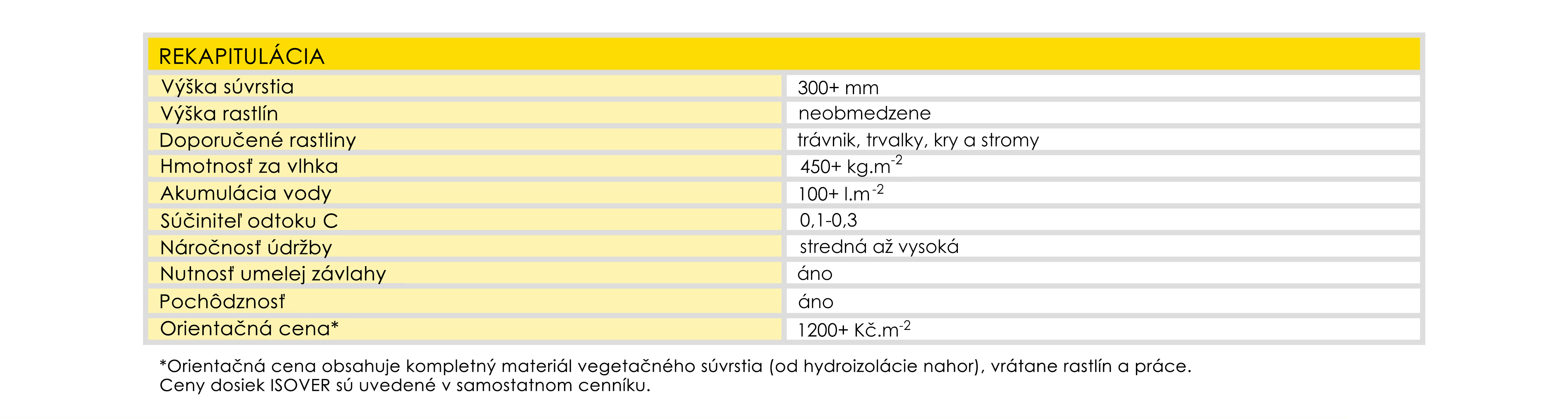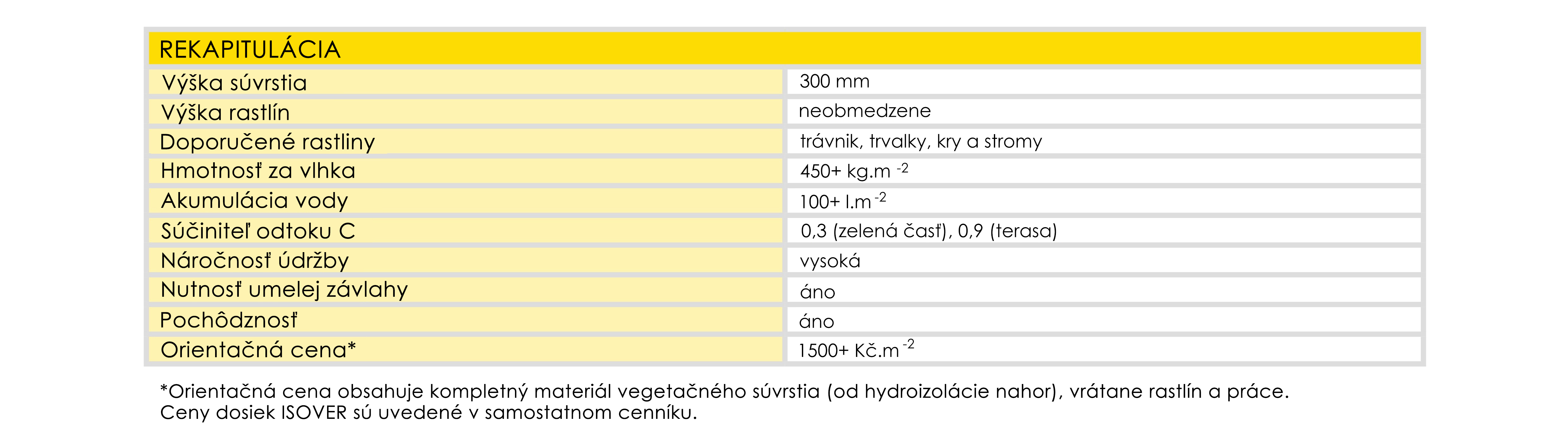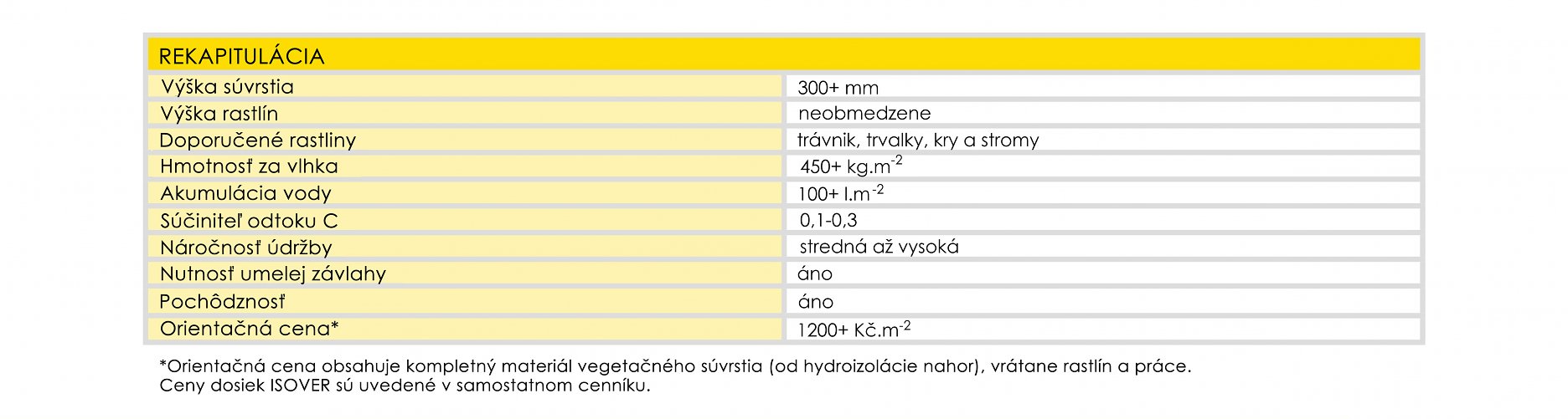 Vegetačné strechy s hydrofilnou minerálnou vlnou ISOVER majú výrazne menšie nároky na vlastnosti strechy než konvenčné skladby so substrátmi. Pre svoju veľmi nízku hmotnosť je možné realizovať vegetačnú strechu aj pri rekonštrukciách, kde nie je príliš dobrá statika.