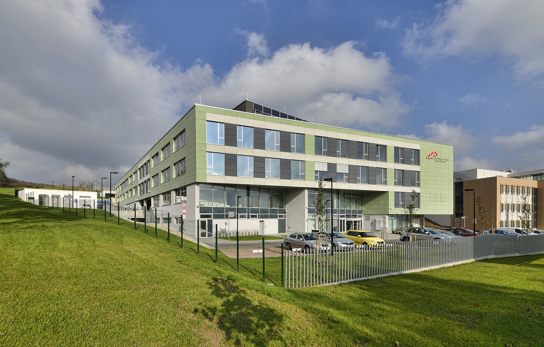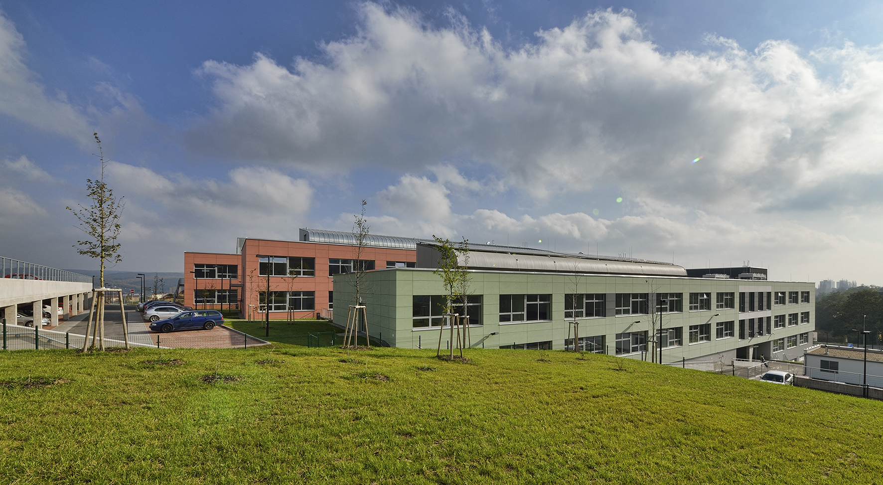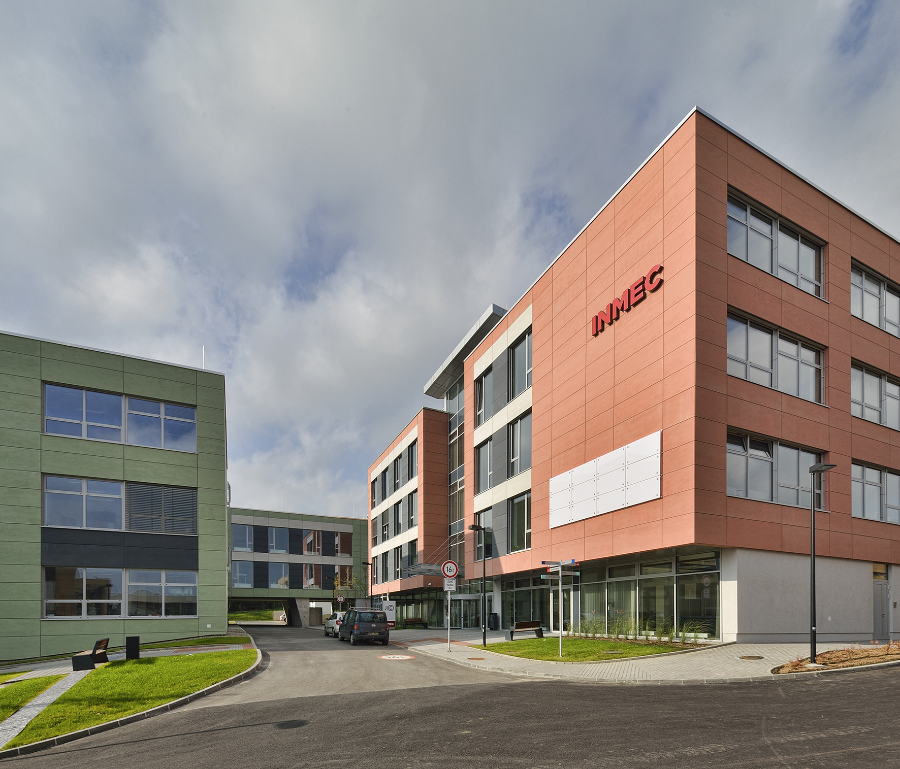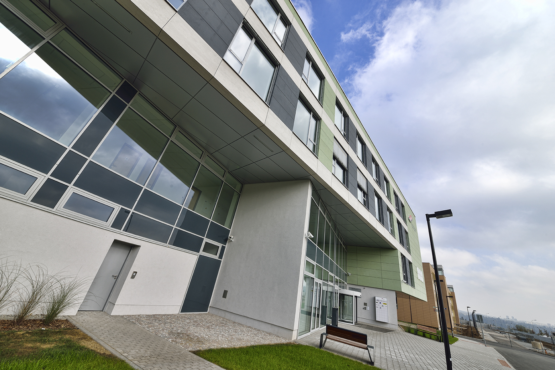 Fasáda inovačného centra je riešená ako odvetraná s okennými otvormi vybavenými elektrickými žalúziami. Ako obklad boli použité veľkoformátové vláknocementové fasádne dosky EQUITONE TECTIVA.
