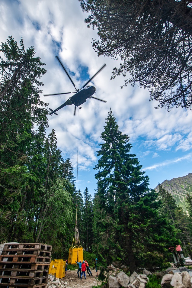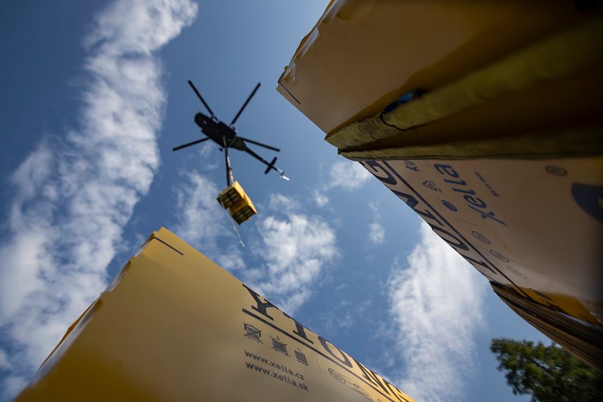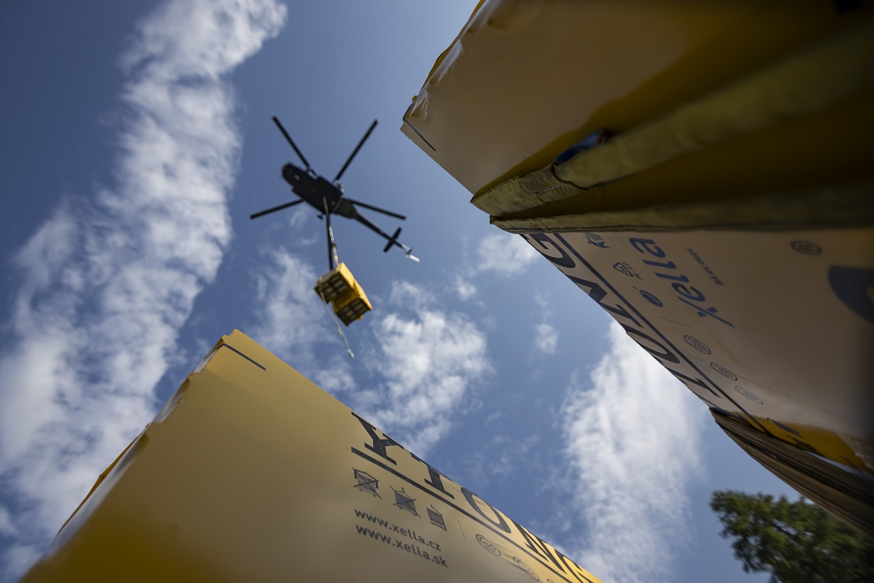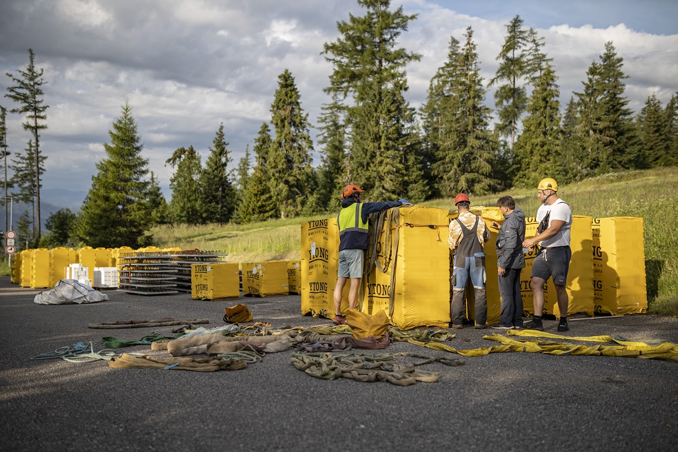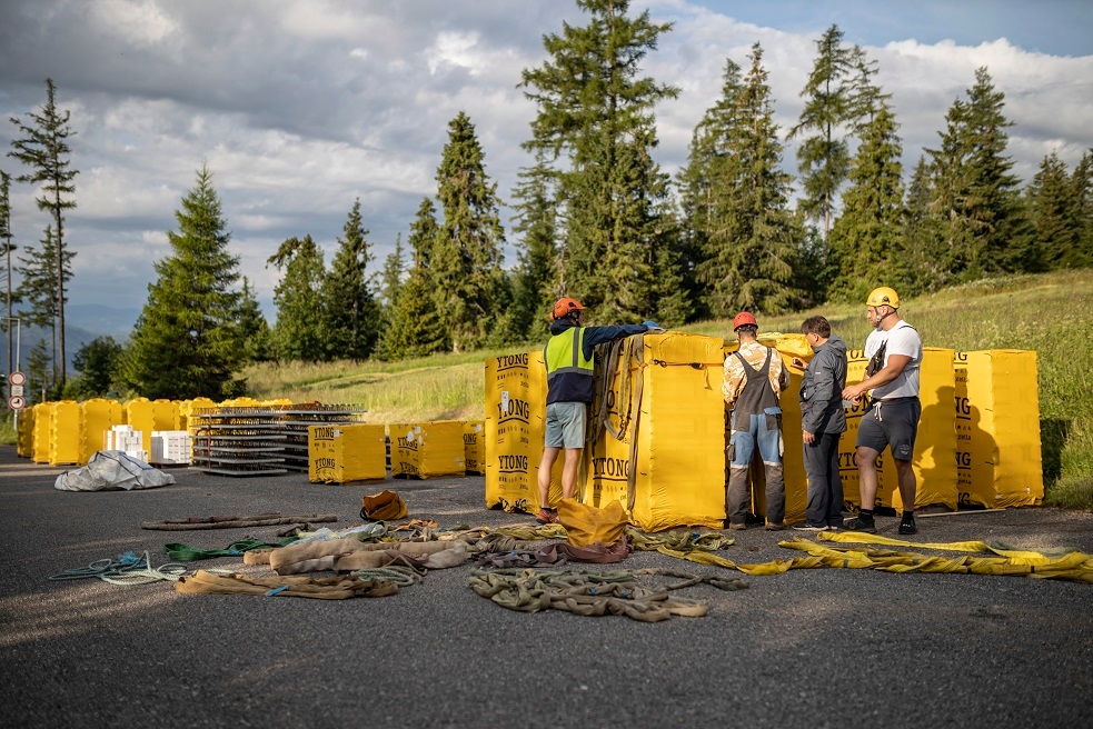 Na steny a priečky novej prístavby sa z Hrebienku na Zamkovského chatu letecky dopravilo až 78 m3 pórobetónu Ytong