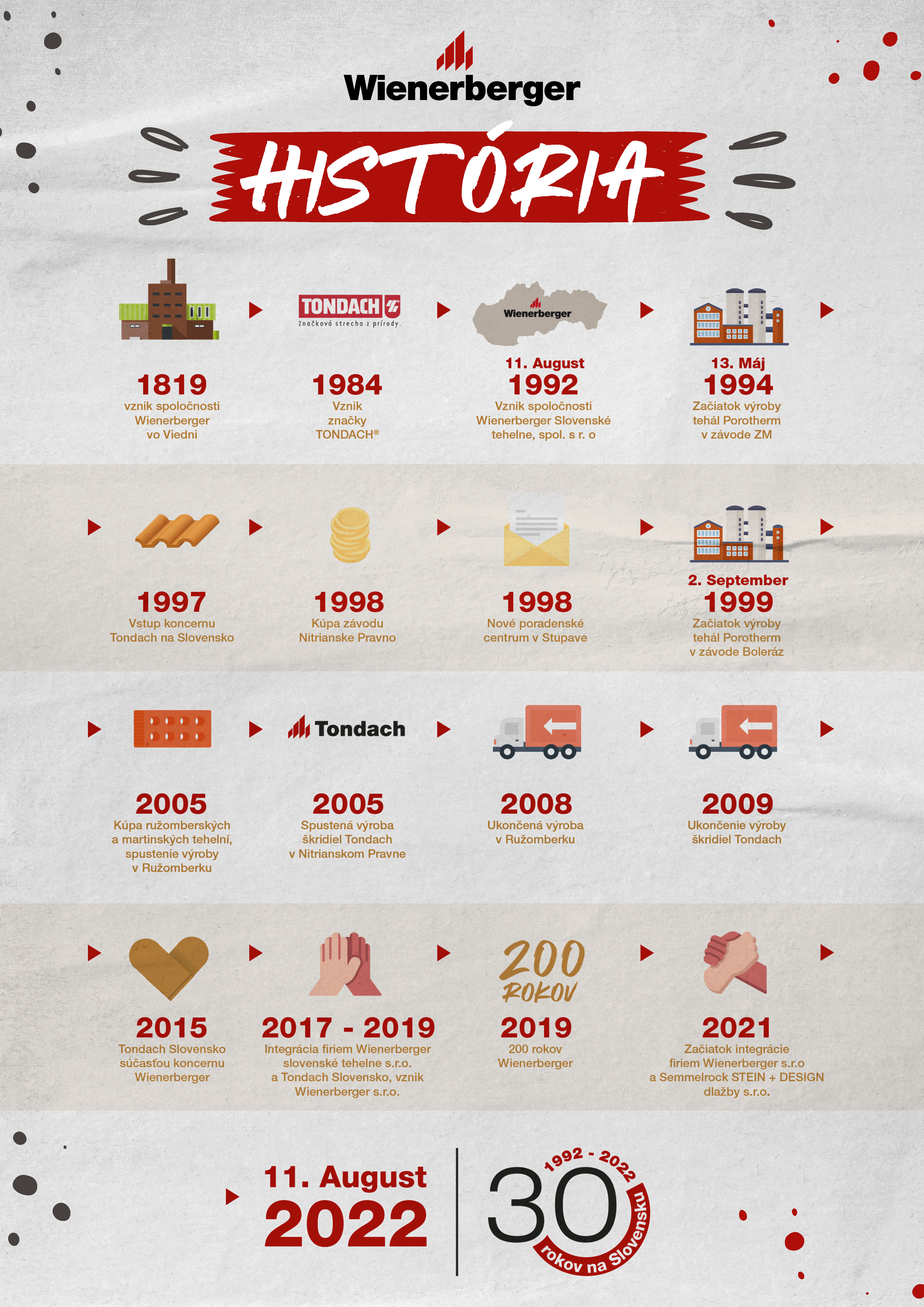 Wienerberger oslavuje v auguste 30. výročie svojho pôsobenia na slovenskom trhu. Patrí k uznávaným výrobcom trvalo udržateľných stavebných materiálov, ktoré zákazníkom prinášajú vysokú pridanú hodnotu a zvyšujú efektivitu ich stavebných projektov.