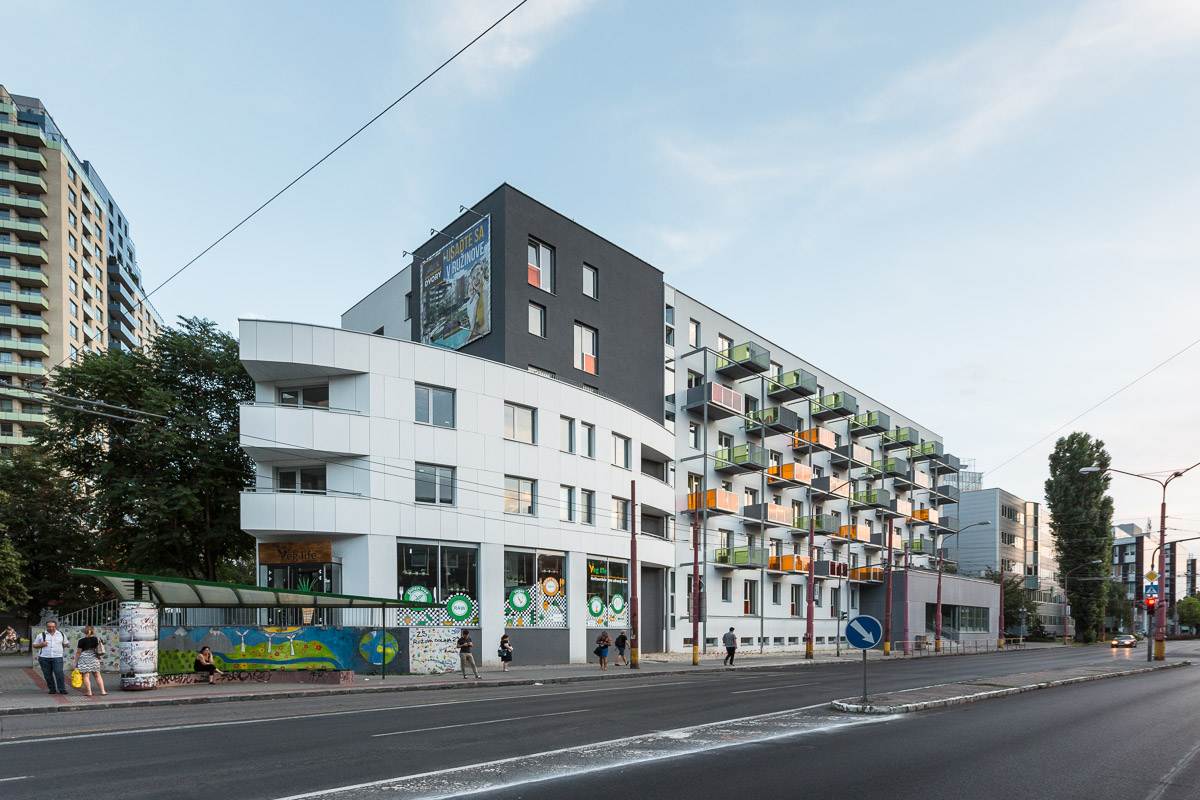 Mestský bytový dom Apollis vznikol z opustenej kancelárskej budovy na rohu Miletičovej a Prievozskej ulice v Bratislave. Za konverziou bývalej sporiteľne na mestský bytový dom s malometrážnymi bytmi stoja architekti z Atelieru 008. Dom upriamuje pozornosť okoloidúcich farebnými balkónmi a rafinovaným fasádnym obkladom. Fasáda odzrkadľuje pohyb, život a dynamiku mestského bývania. Na bytovom dome boli použité obklady z vláknocementových dosiek Equitone [tectiva], ktoré charakterizuje jemne brúsený povrch v pozdĺžnom smere dosky. Pri obklade priečelia v tvare lode architekti ocenili možnosť jednoduchého prispôsobenia dosiek na rôzne formáty a tvary. V niektorých miestach sa im dokonca podarilo vytvoriť zaujímavý vizuálny efekt podobný origami.