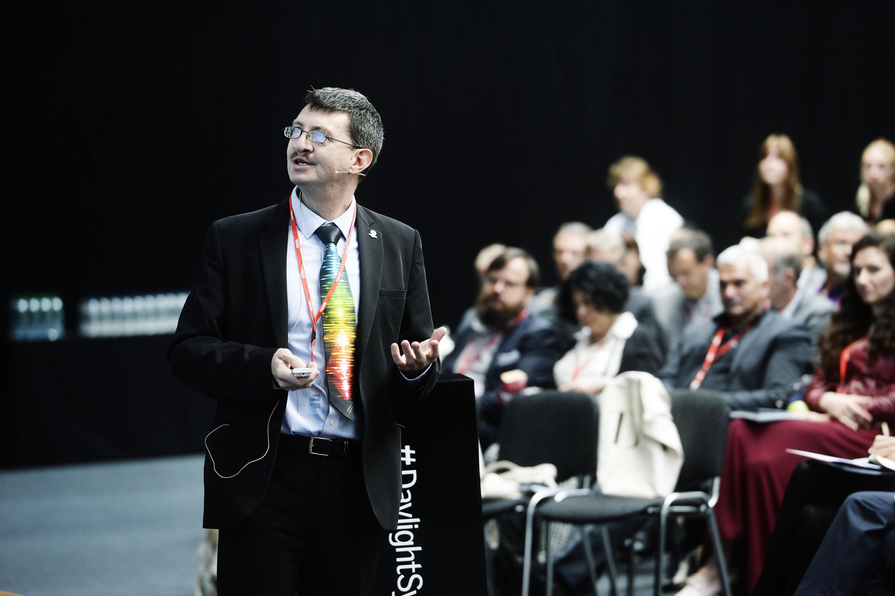 Odborný program sympózia poukázal zo všetkých strán a zo všetkých uhlov pohľadu na význam svetla pre človeka. „Ako dizajnéri by sme sa mali zameriavať najmä na vytváranie psychickej pohody pre ľudí. V tomto ohľade hrá denné svetlo kľúčovú úlohu,“ povedal profesor Koen Steemers z Cambridge University v jeho úvodnom prejave tohtoročného sympózia. Zároveň predstavil svoj nový koncept, tzv. nudge-architecture (architektúra povzbudenia) – budovy by mali aktívnym spôsobom podporovať ľudí, aby ostávali v kontakte a snažili sa priniesť viac zdravia a pohody do svojho života.