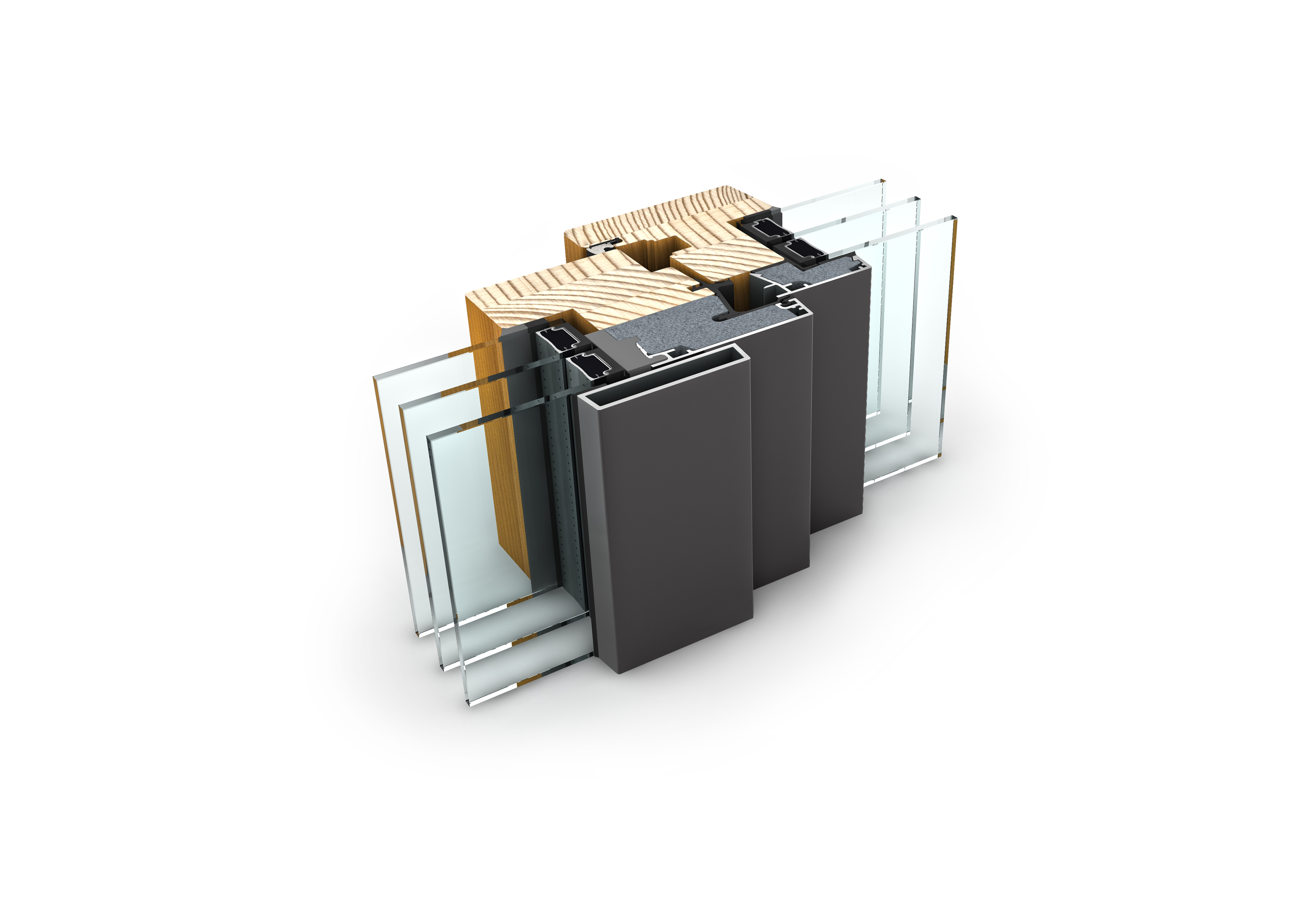 HX 300 je rámový systém z drevo- hliníka, ktorý dovoľuje zabudovanie okenných elementov a izolačných skiel