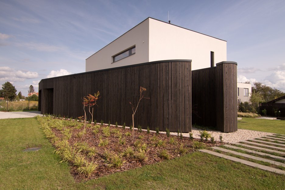 Klienti mali predstavu čistého konceptu bez zbytočností, celkovú jednoduchosť však chceli "narušiť" aspoň jedným atypickým prvkom. Požadovali, aby dom bol poschodový a prevládali v ňom prírodné materiály. „Pre mňa ako architektku bola po konzultácii s klientom predstava jasná - moderný, minimalistický a zároveň funkčný dom pre mladú štvorčlennú rodinu, maximálne prepojený so záhradou. Zhodli sme sa na predstave prírodných materiálov na fasáde domu, ktoré budú pozvoľna vstupovať do interiéru," vysvetľuje svoj návrh architektka. „Konštrukčne sme chceli domu dať neobvyklý nádych. To sa nám podarilo vďaka zaoblenému amorfnému tvaru, ktorý formuje celé prízemné podlažie. Túto pôdorysnú krivku prerušia veľkoformátové sklenené steny obývacej izby, orientované do záhrady. Druhé podlažie tvorí čistá a jednoduchá kvádrové hmota," dodáva k tvarovému riešeniu. Projekt sa podarilo realizovať nielen po stránke estetickej, ale realizácia obstála aj v každodennom užívaní: „Aj keď je dom presklený a vzdušný, stále nám ponúka dostatok súkromia," hodnotí výsledok majiteľ domu.