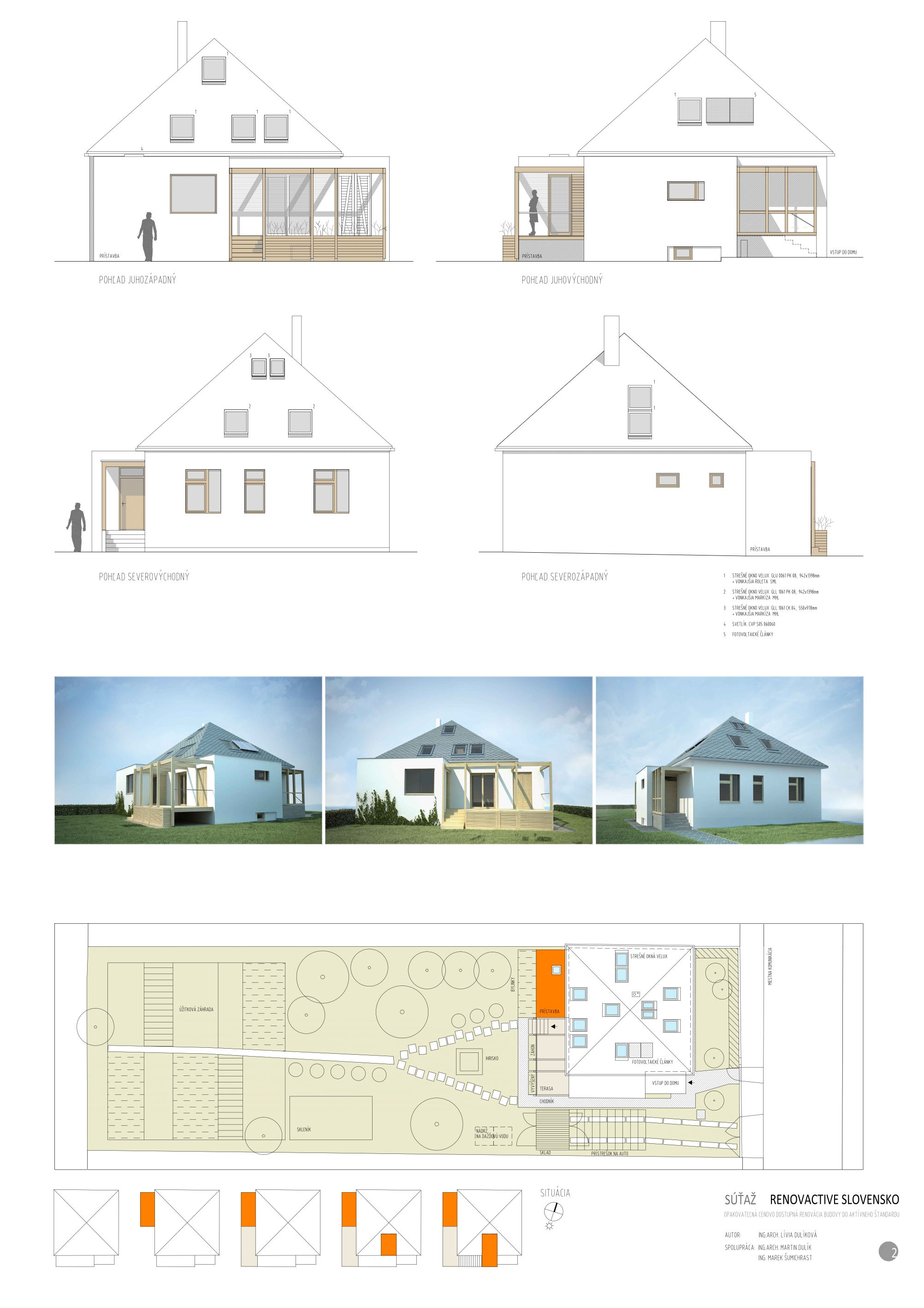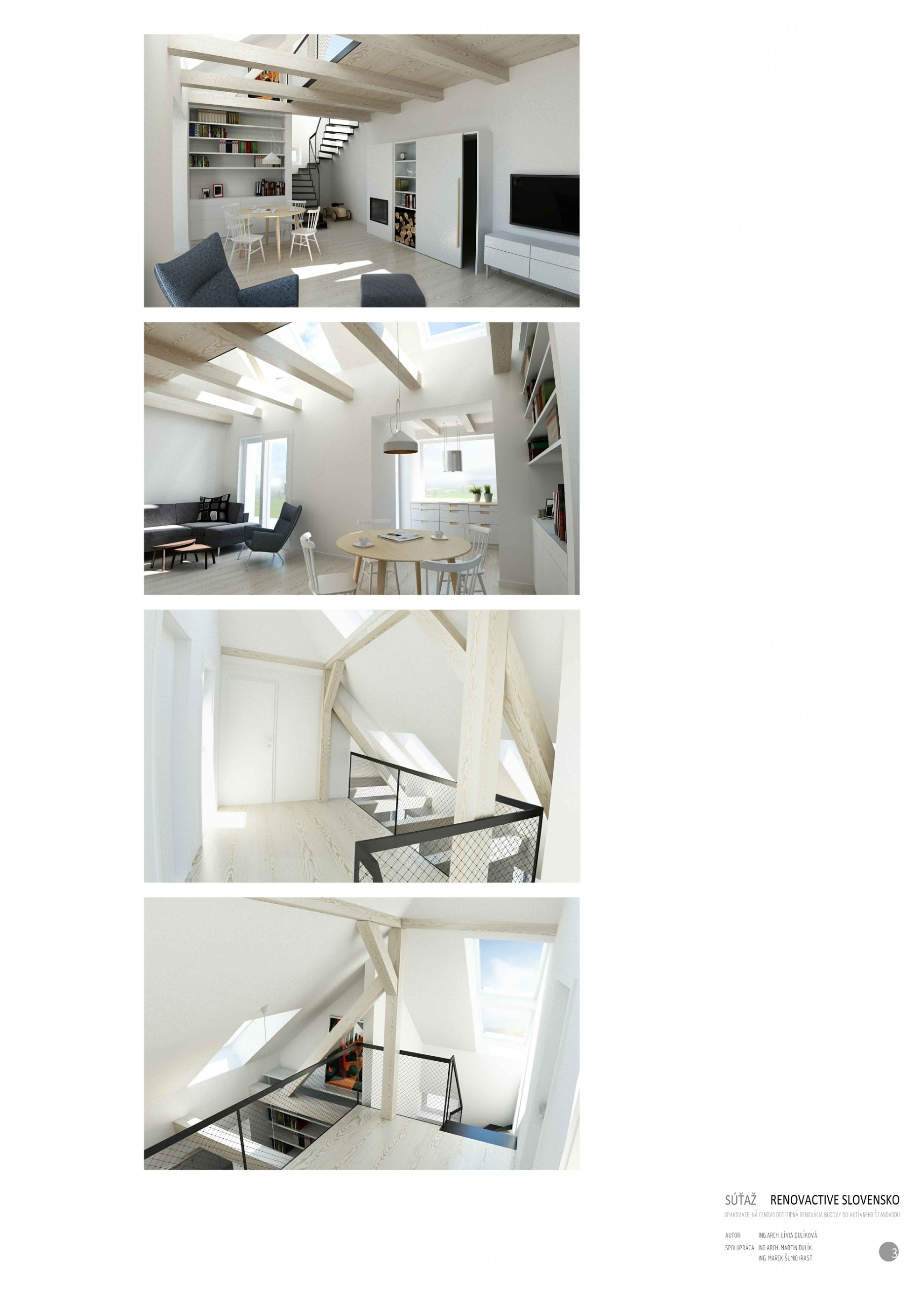 Podľa slov Ing. arch. Martina Doršica, z architektonickej kancelárie Ddak, bol projekt RenovActive skutočnou architektonickou výzvou: „Súťaž som vnímal, ako príležitosť zužitkovať skúsenosti z riešení rezidenčného bývania – a špeciálne podkroví. Výzvou bolo najmä riešenie aspektov kvality bývania, napr. svetelný posudok pre typový dom zo 60. rokov 20. storočia.“ Ostatné architektonické návrhy sa umiestnili bez uvedenia poradia.