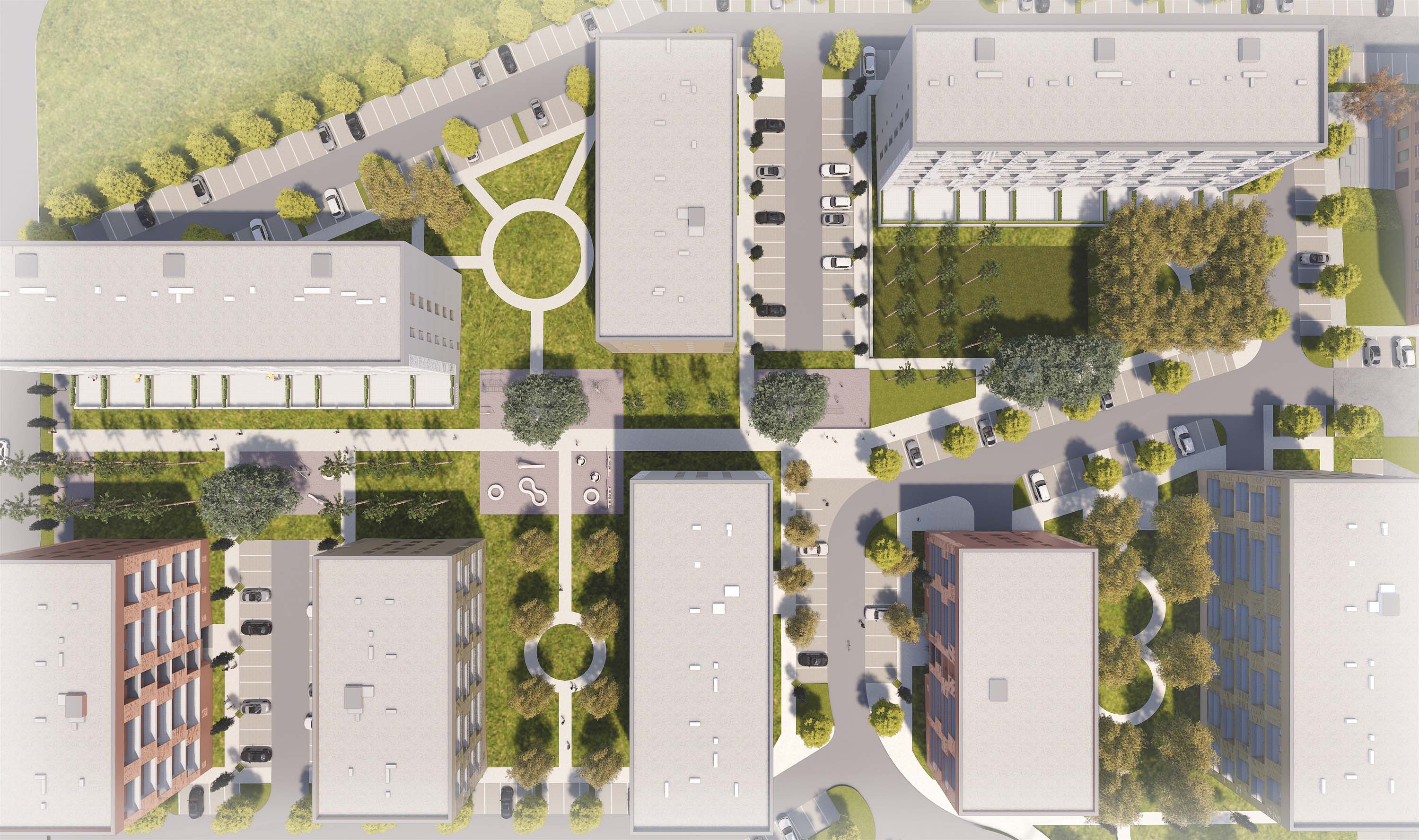 Projekt počíta aj s verejným parkom, ktorého úpravy sú založené na kombinácii chodníkov, zelene, detských ihrísk, lavičiek a voľných priestorov, ktoré prinášajú do územia možnosť kvalitného trávenia voľného času.