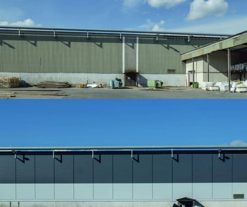 FOTO: Budova drevovýroby v meste Metsä prešla modernizáciou a fasádou získala elegantný vzhľad. Renovácie sa chopila práve spoločnosť Ruukki.