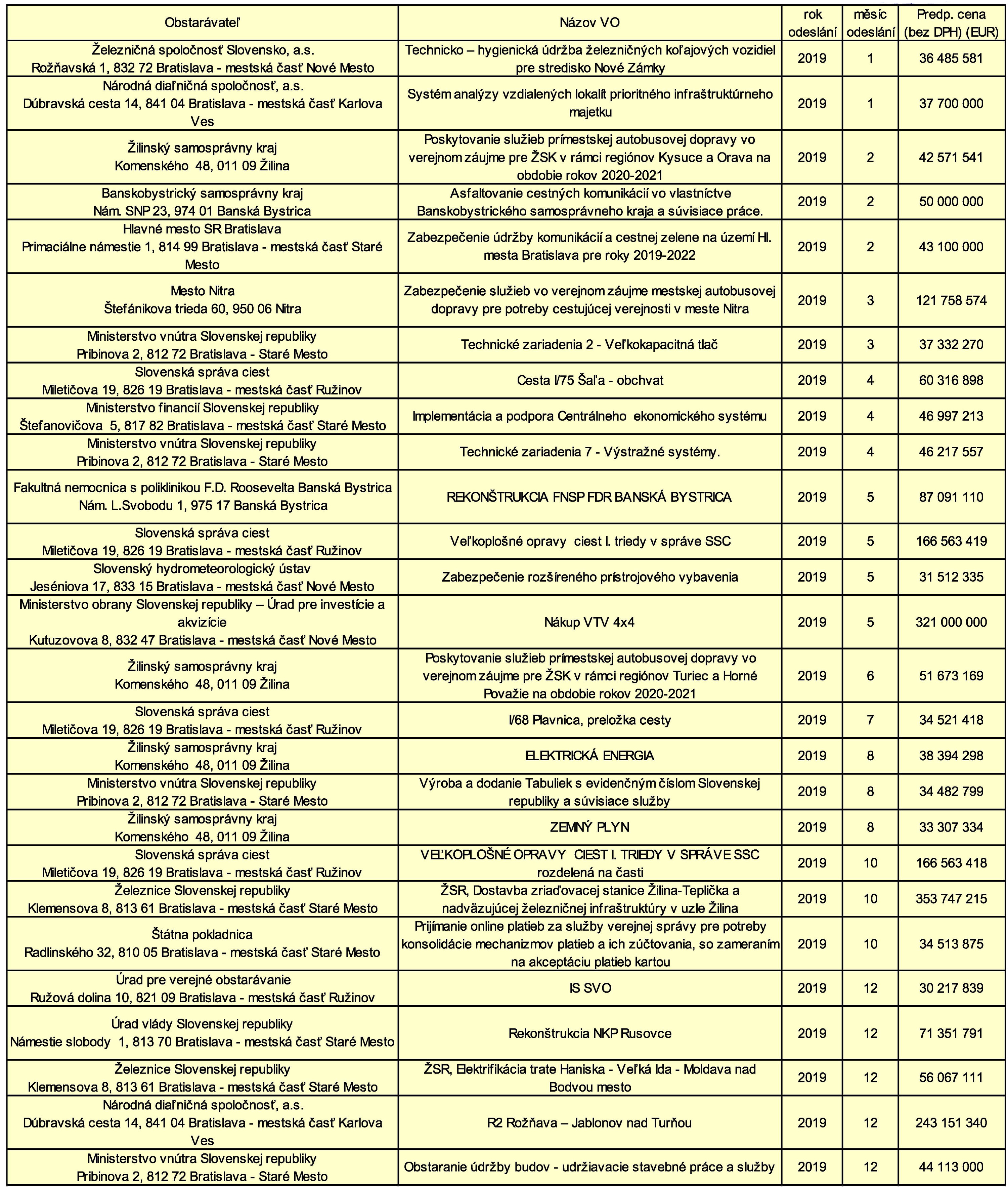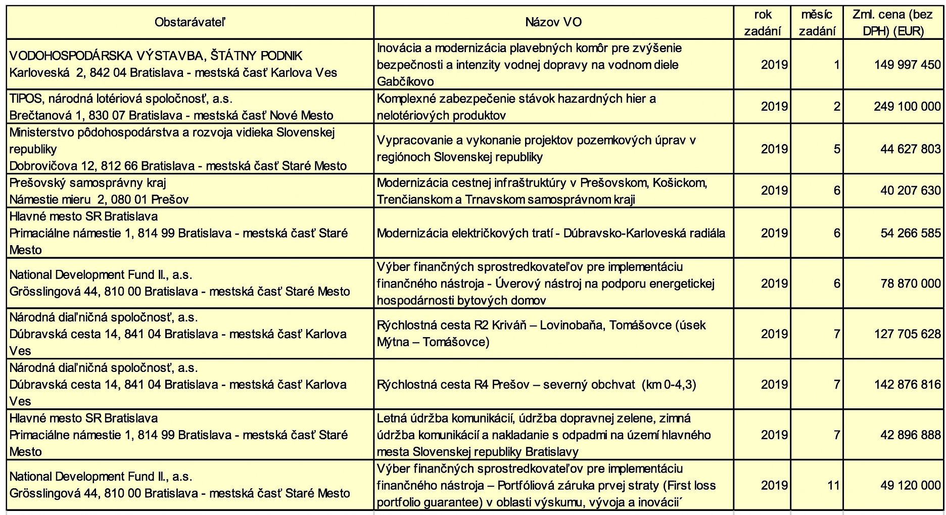 Zákazky vyhlásené v minulom roku s najvyššou hodnotou