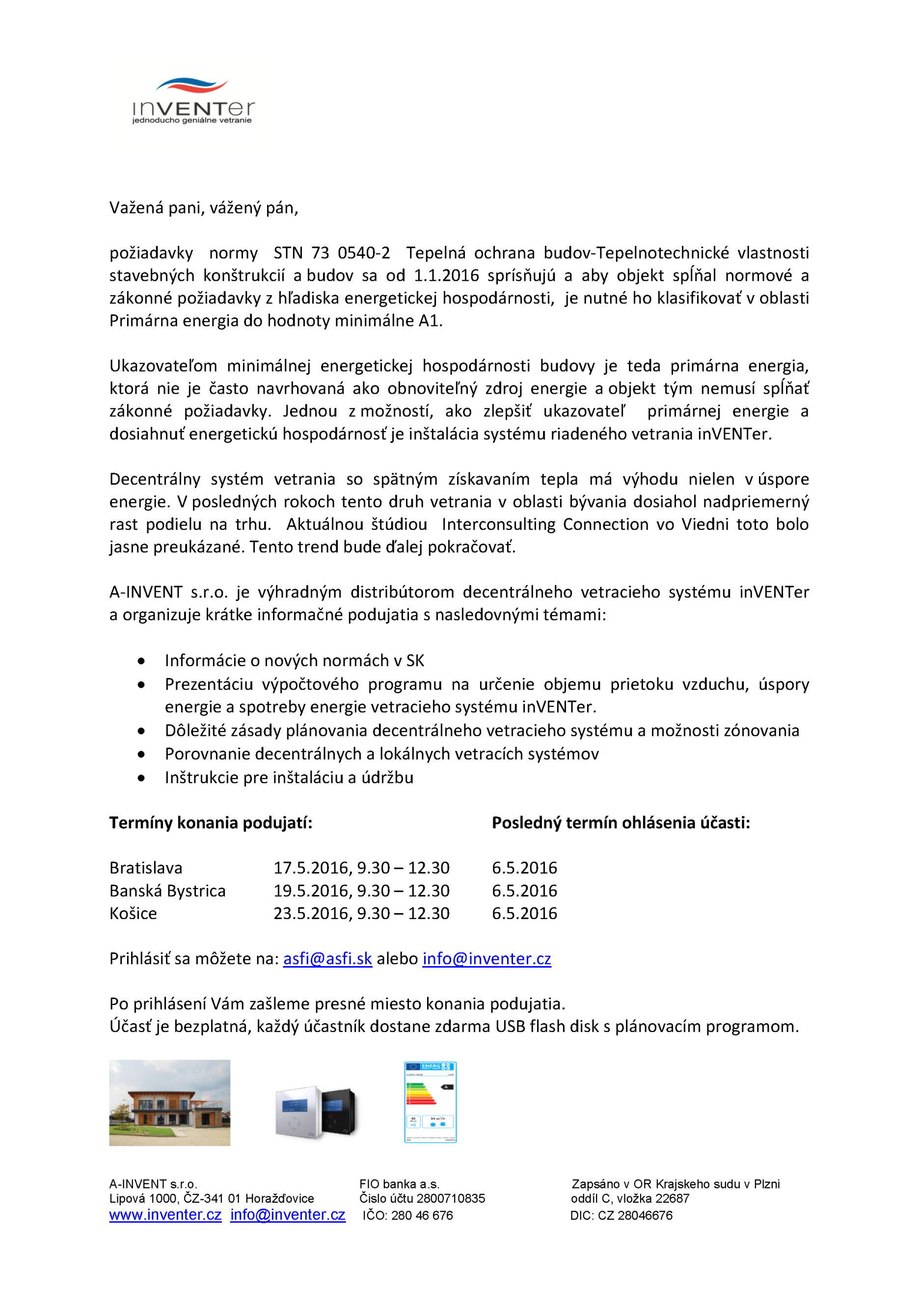 Prihlásiť sa môžete na: asfi@asfi.sk alebo info@inventer.cz