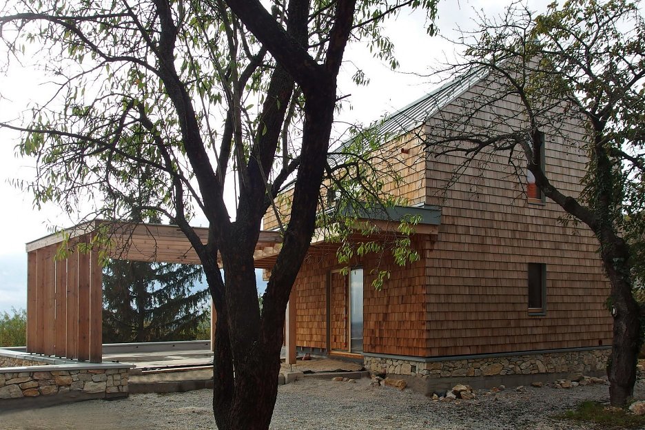 Investor je fanúšikom zdravých a ekologických materiálov. Objekt je postavený ako drevostavba. Prírodné materiály boli podmienkou - kamenný obklad je z masívneho kameňa z lomu a priamo na stavbe ho upravovali. Fasáda je z kameňa a dreveného šindľa. Na obklad drevenej fasády je použitý šindeľ z kanadského cédra. Na sokle, atiky, oplechovanie je použitý prírodný titanzinok, interiér je tiež obložený drevom.