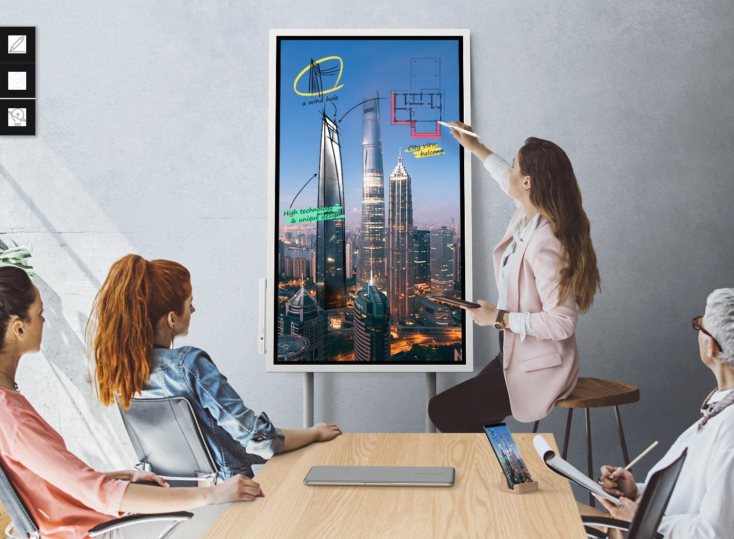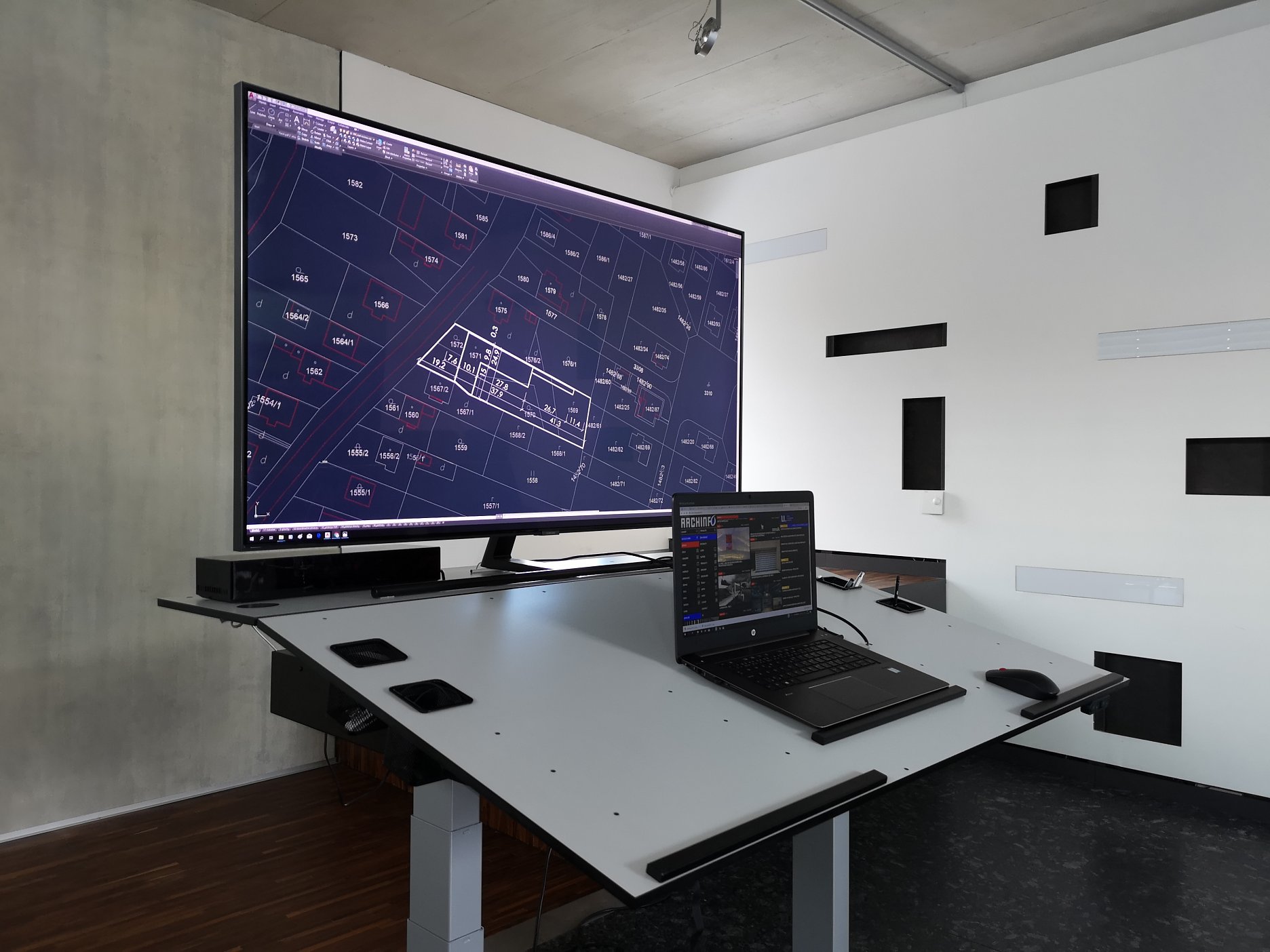 Je to niečo iné, ako obyčajná obrazovka. Toto by v ateliéri chcel asi každý. Nástroj, prostredníctvom ktorého sa dajú interaktívne prezentovať klientom výsledné návrhy, alebo naopak, už v procese tvorby ho použiť na tvorbu a diskutovanie. Priamo v reálnom čase môžeme graficky komunikovať. Predkladať svoje pripomienky, nápady, korekcie..., následne tieto úpravy zaznamenať a bezprostredne zdieľať...