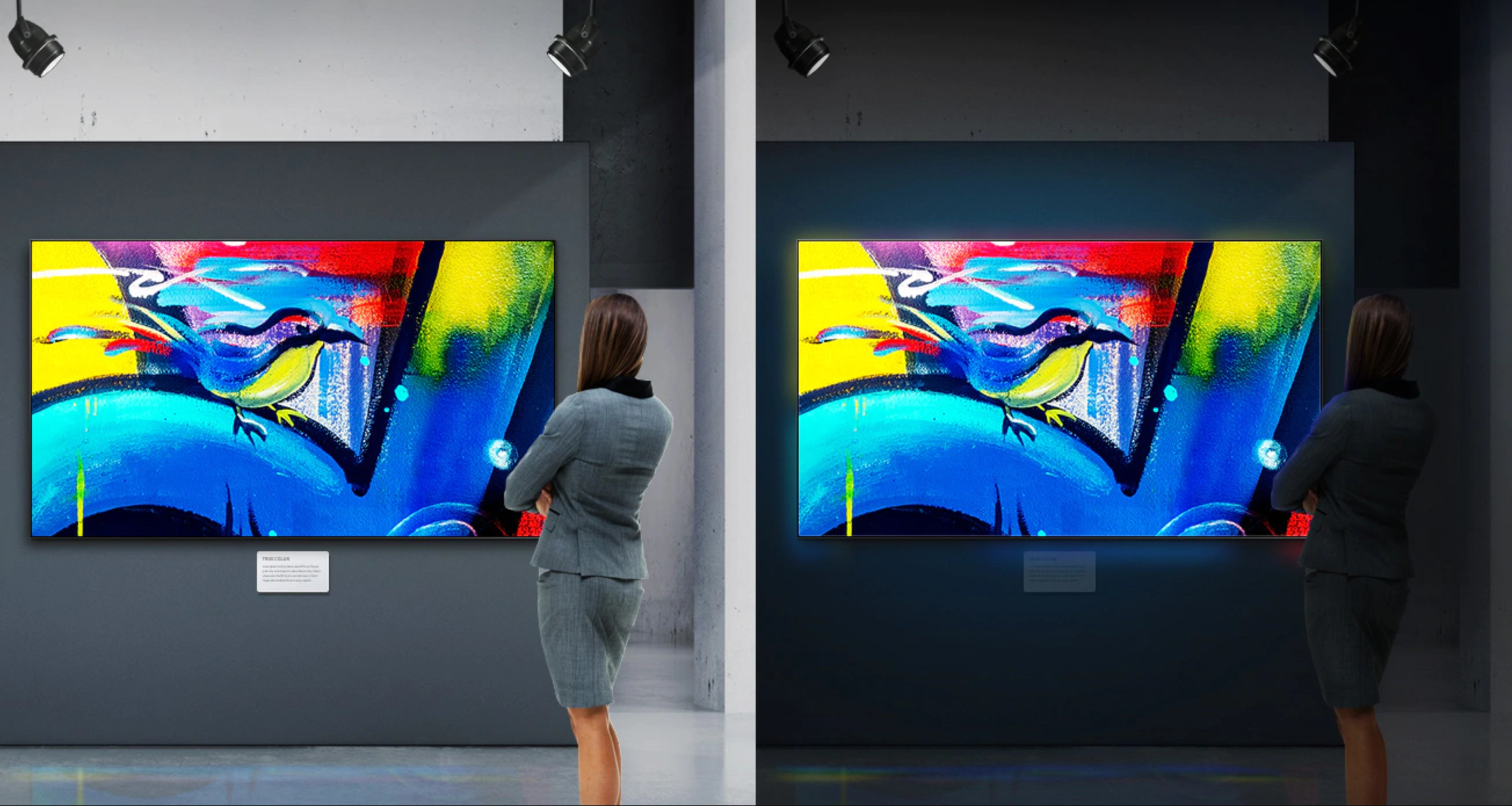 Jednou z noviniek, ktoré Samsung pri svojich nových modeloch prezentuje je režim “Ambient”. V podstate je to trvalé zobrazenie vybraného motívu na obrazovke. Ak ako motív použijeme fotografiou steny, ktorá je za obrazovkou, monitor sa v režime Ambient stane “neviditeľným” alebo “menej viditeľným”.