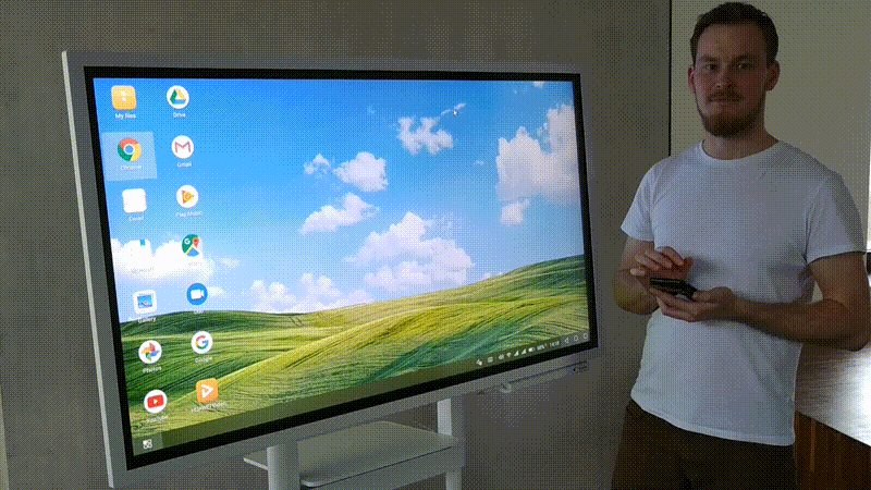 Jednoduchým spôsobom sa dá spojiť aj so smartphonom cez funkciu “smart view” alebo “screen mirroring”. Monitor podporuje verziu Android 8.0 (a vyššiu). Orientáciu monitora si môžeme prispôsobiť podľa predmetu prezentácie. Funkciami sa to nelíši od prepojenia s notebookom. Takisto si môžeme robiť screenshoty, poznámky a prehliadať prezentáciu, obrázky, alebo internetový prehliadač. Importovať obsah môžeme aj cez nosiče pripojené pomocou USB rozhrania. Samotný “Flip” rozlišuje formáty PDF, PowerPoint, Doc. a bežné obrázkové formáty. Pri obrázkových formátoch ( jpg, bmp, png) môžeme poznámkovať priamo. Pri ostatných spomenutých formátoch je potrebné kresliť na screenshoty.