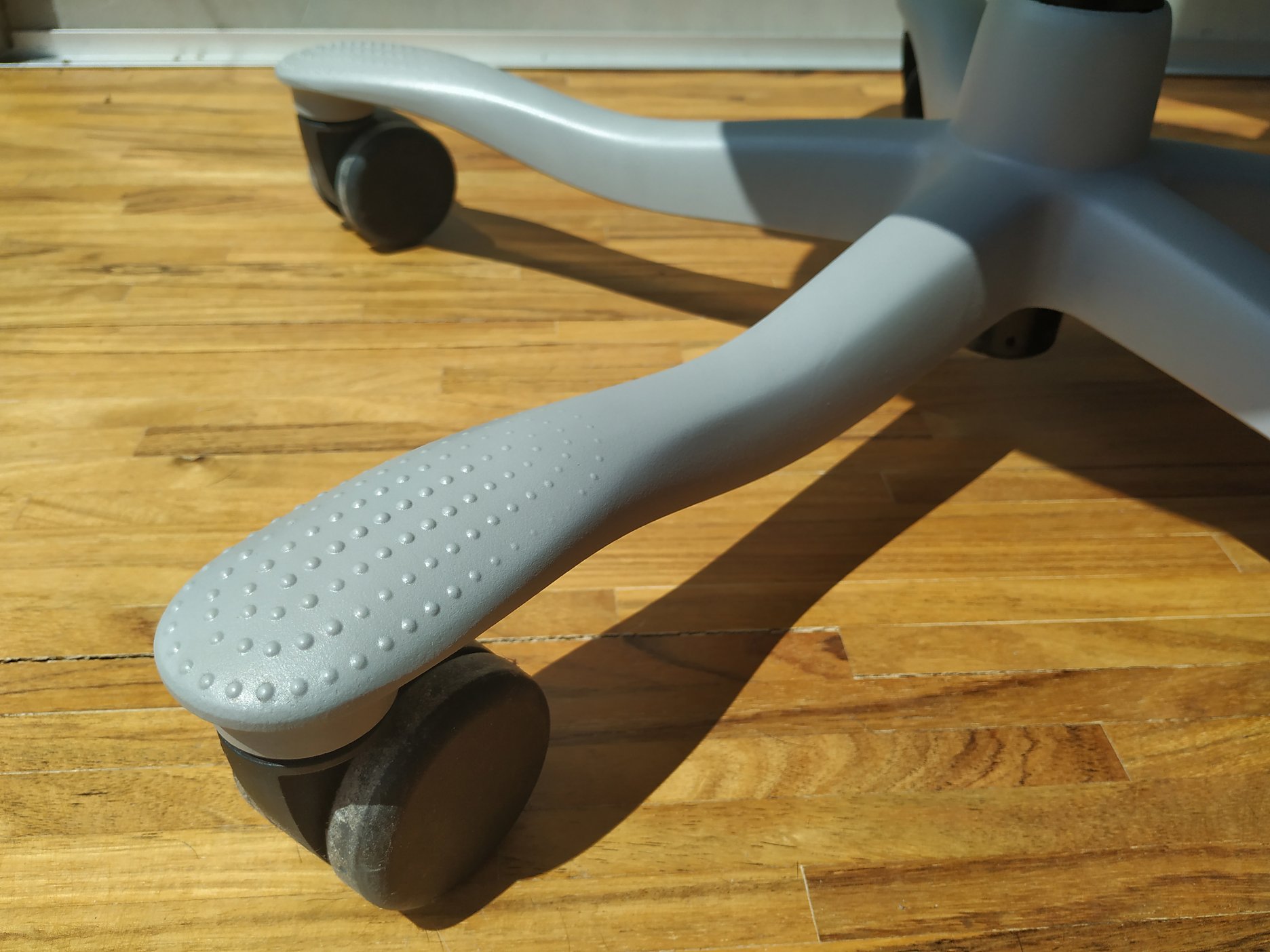 Potešia aj drobné detaily, napríklad "ploché" tvarovanie koncov nôh podvozkového kríža (Kinnarps) umožňuje príjemnejší kontakt nôh s podvozkom kancelárskeho kresla.