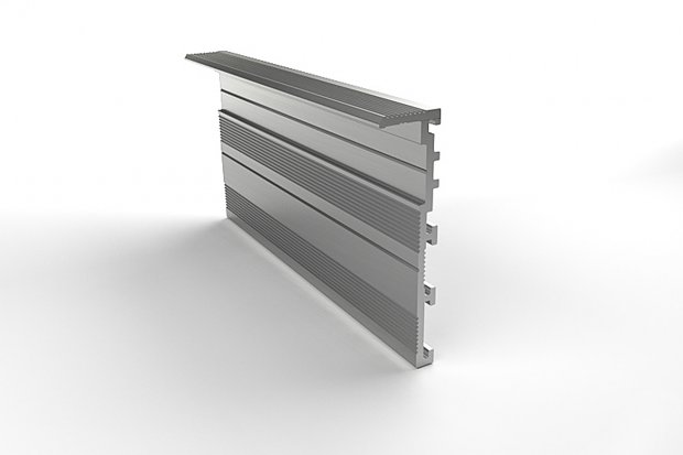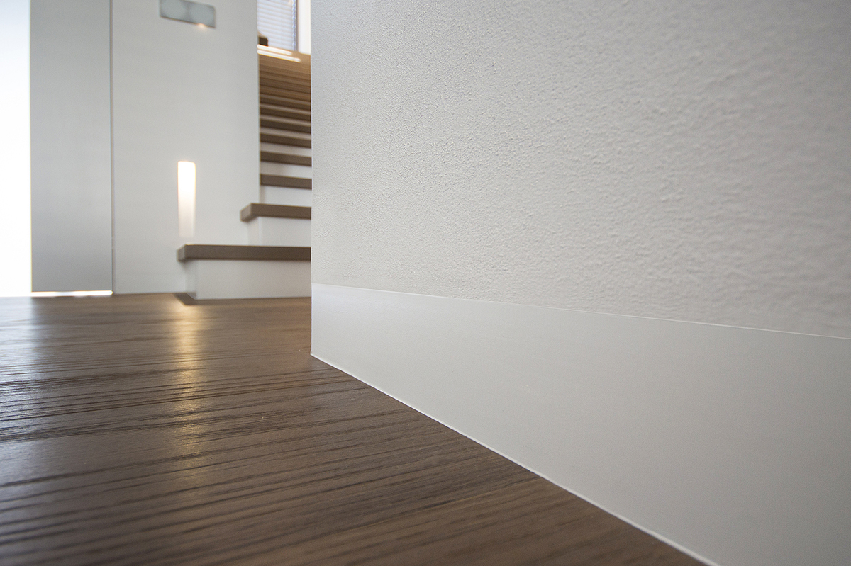 Štandardom je lakovaná MDF hrúbky 8mm v akomkoľvek odtieni RAL, úplnú dokonalosť je možné dosiahnuť použitím vkladky z podlahovej krytiny (opäť v hrúbke 8mm) alebo rezaných keramických dlaždíc. Výsledkom je soklová lišta v rovnakom dizajne s podlahovou krytinou, skutočný minimalizmus v každom detaile.
