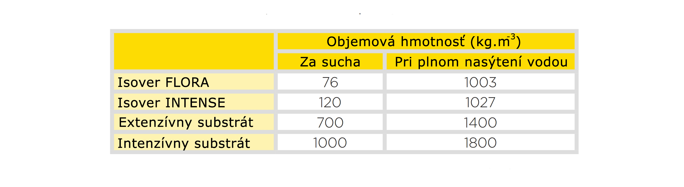Základným obmedzujúcim prvkom, ktorý bráni ozeleneniu obzvlášť pri rekonštrukciách, je únosnosť strešného plášťa. Skladby s hydrofilnou vlnou majú tú výhodu, že sú ľahšie ako bežný substrát, ktorý sa na vegetačné strechy používa. Hmotnosti ucelených súvrství sú uvedené v tabuľkách predchádzajúcej kapitoly.