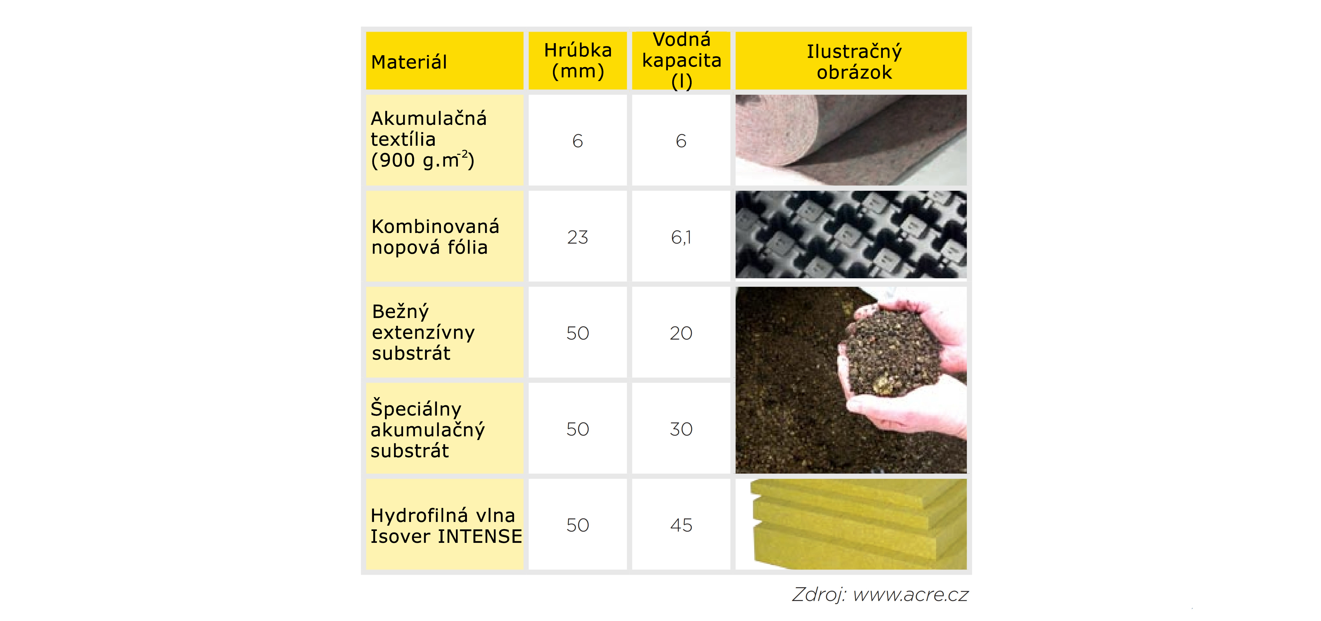 INTENSE). Porovnanie hydroakumulačnej schopnosti rôznych materiálov je uvedené v nasledujúcej tabuľke.