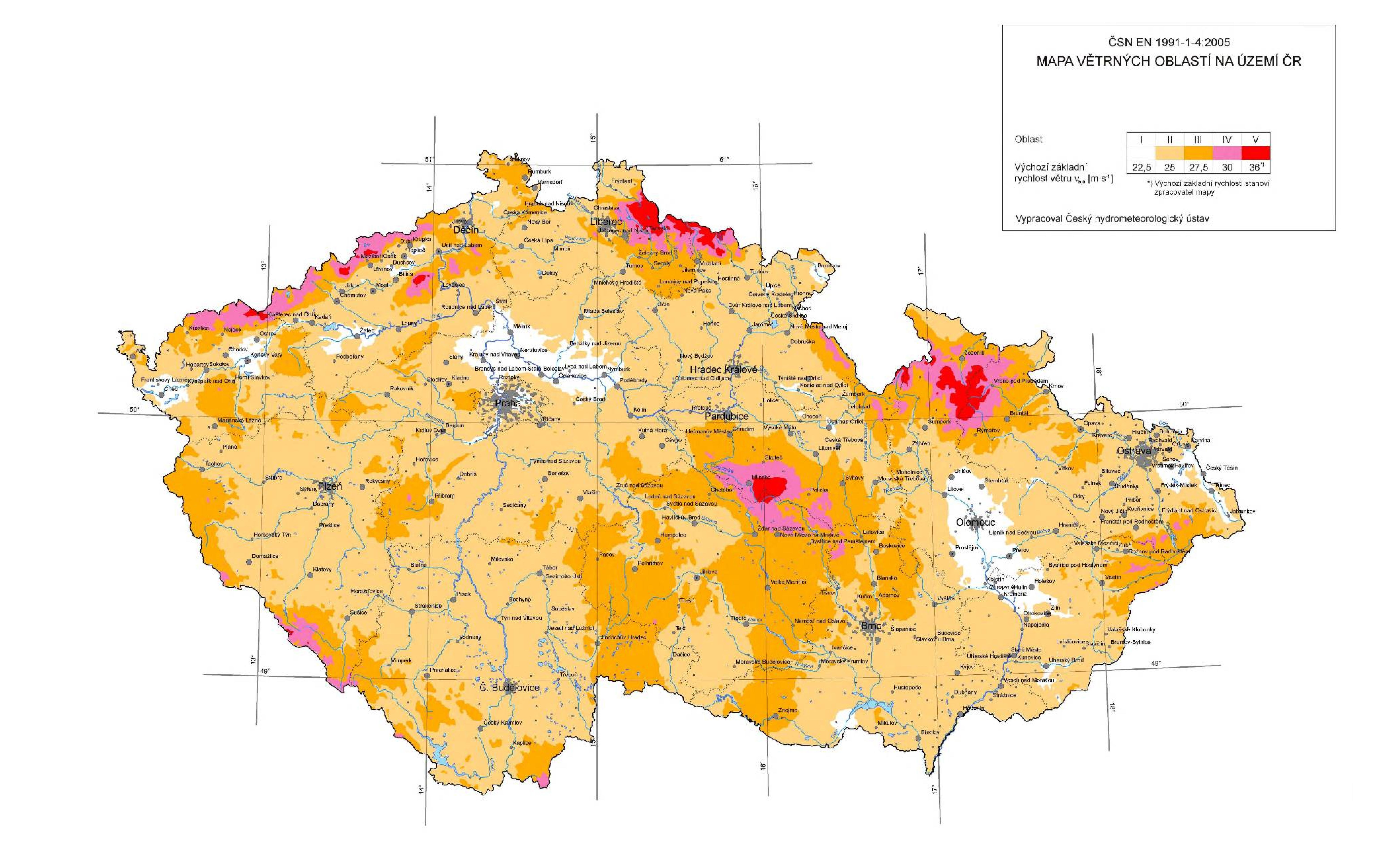 Vegetačné strechy obsahujúce prevažne hydrofilnú minerálnu vlnu iba s tenkou vrstvou substrátu (Úsporná strecha ISOVER) sú v suchom stave veľmi ľahké. Ak sú umiestnené v oblastiach so silným namáhaním vetrom (horské oblasti, alebo pri veľkých otvorených plochách, najmä vodných), je nutné ich kotviť. Šikmé vegetačné strechy ISOVER sa kotvia vždy. Výpočet sania vetra sa urobí podľa európskej normy STN EN 19911-4, kde je spracovaná lokalizácia aj pre Českú republiku. Mapa veterných oblastí vyčísľuje silu vetra v 5 zónach.