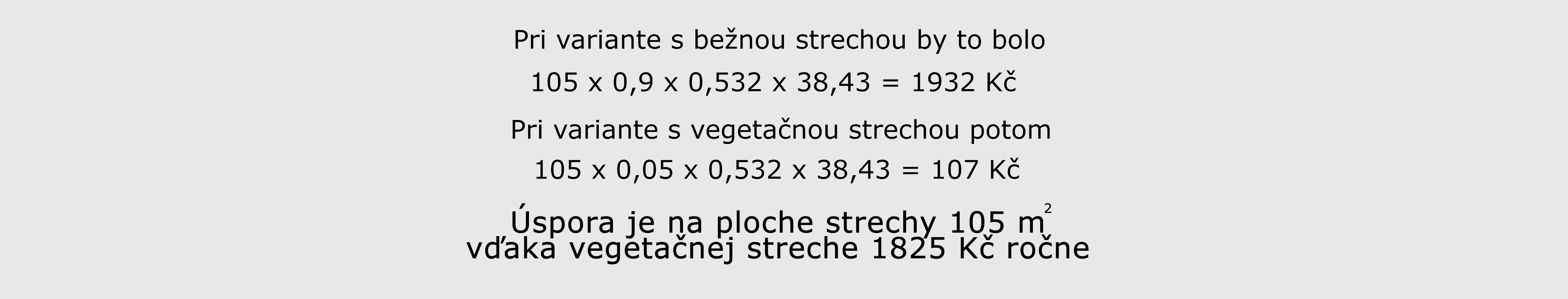 Pre ukážku výpočtu je vybraná jednoduchá plochá strecha garáží, ktoré patria k bytovému domu v Prahe. Strecha je realizovaná z rozchodníkov a jej zloženie zodpovedá skladbe Úsporné strechy tak, ako je uvedené v časti 2.