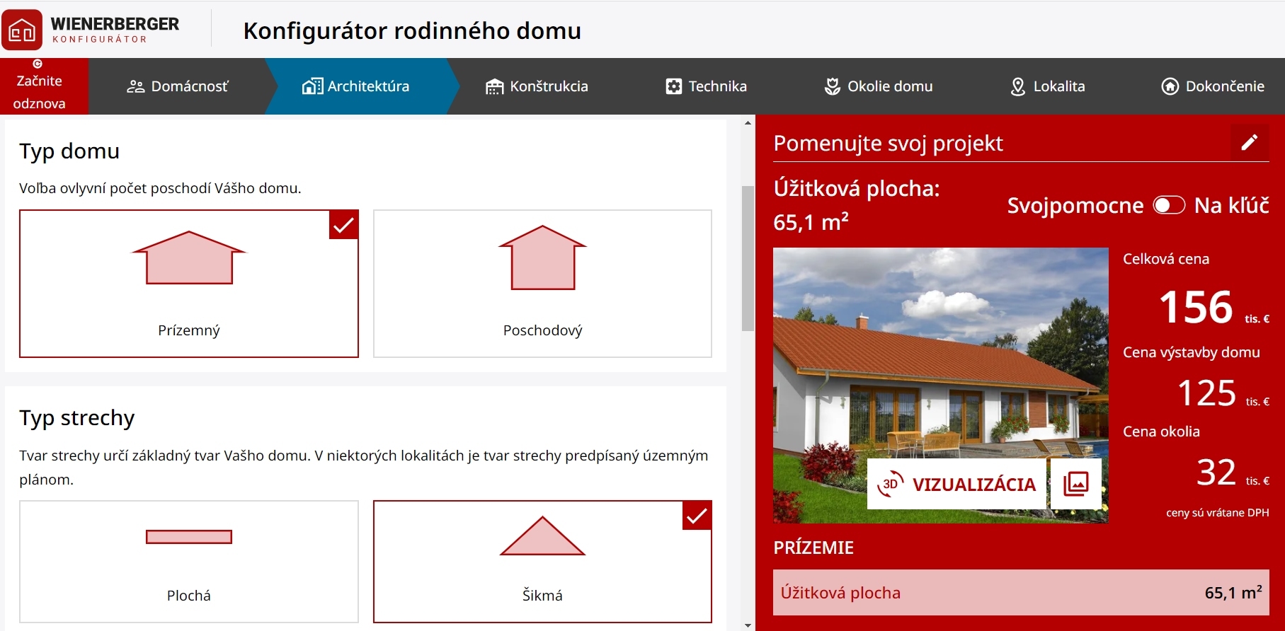 Wienerberger konfigurátor umožňuje zadávanie individuálnych požiadaviek zákazníka a vyšpecifikovanie rôznych detailov jeho budúceho domu.